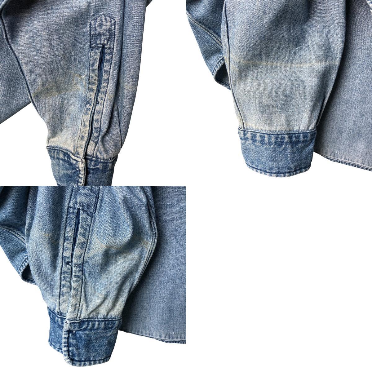 表記サイズ: L 着丈: 84cm 身幅: 61cm 肩幅: 47cm 袖丈: 65cm ![]() | ![]() ランク:C USEDデニムですので使用感、擦れ、色落ちなどございますが、まだまだご愛用していただけます。 古着という事をご理解の上ご注文よろしくお願いします。 【状態追記】 ●前、首元・胸・腹部・裾・左右腕に汚れ ●前、第4・第6ボタンにリペア跡 ●後、右腰に汚れ ●後、裾・左右腕に擦れ ●内側、襟全体・左右腕・左右袖先に汚れ |