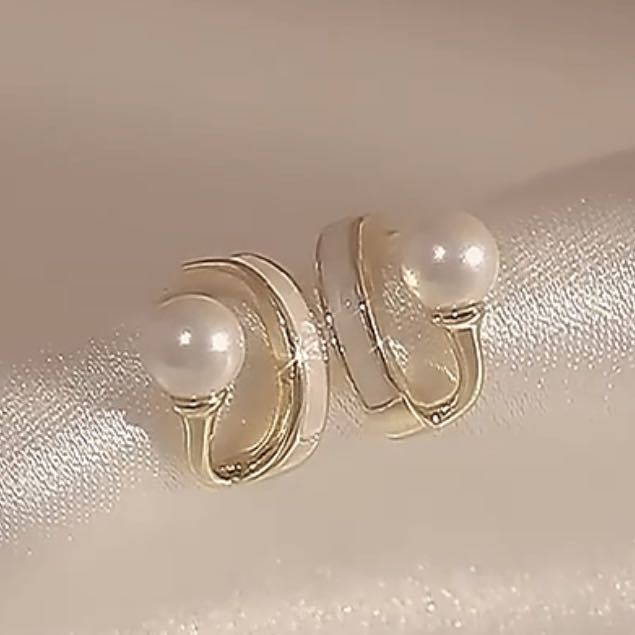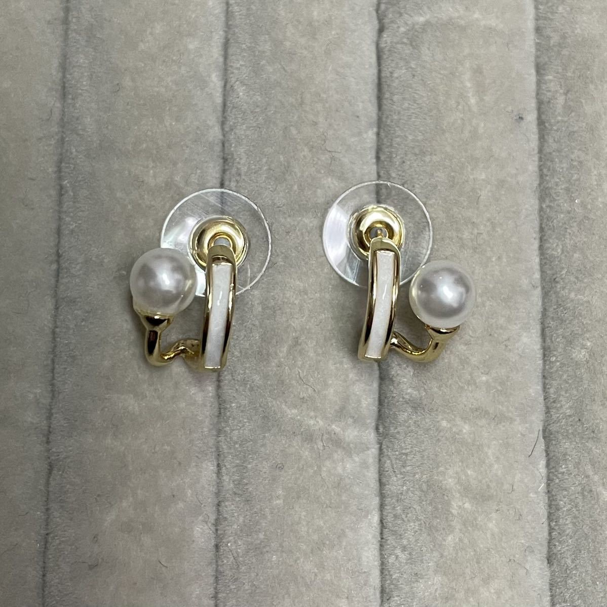 ゴールド×ホワイトに淡水パールを加えた上品なピアスになります^ ^