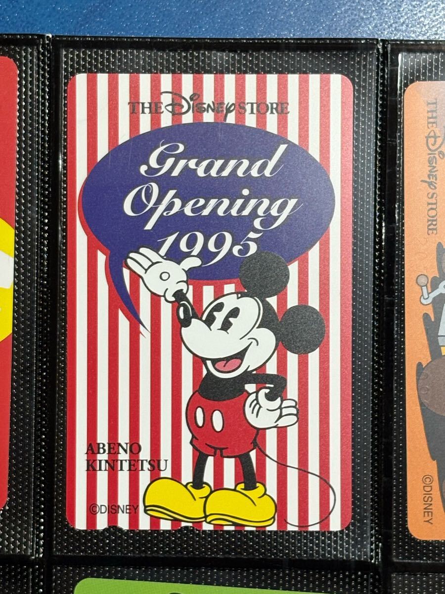 1995年にあべの近鉄店のディズニーストア開店を記念して配布された非売品テレホンカードです。クラシックな縦ストライプの背景に、スピーチバルーンで「Grand Opening 1995」と描かれたデザインが印象的で、レトロな魅力のある一枚です。ディズニーファンやテレカ収集家に人気の高いアイテムです。