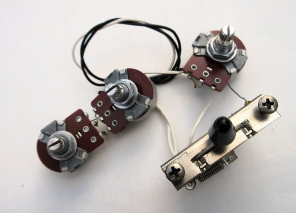 セット内容はボリューム(A250k)、トーン(A250K)×2、DM-50型 5点式スイッチです。