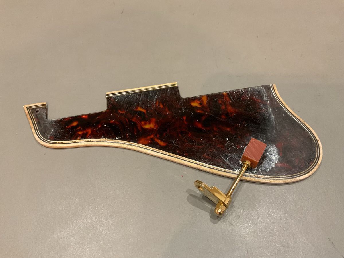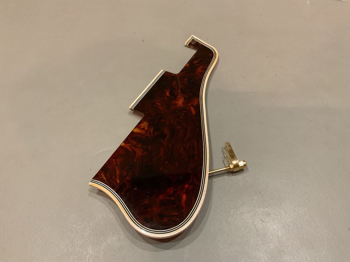 近年のエピフォン バインディング黄ばみあり。epiphone custom shopのEs-355 1959のロングガードです。正直アジア製のギターパーツに期待していませんでしたが、近年のGibson製の塩ビのピックガードより全然良いです。色味も良くとろっとした質感でマーブル模様もオリジナルビンテージに近いです。90年代の赤みのある鼈甲柄はギターに深みが出ますね。 6枚目は別物を取り付けた参考画像です。