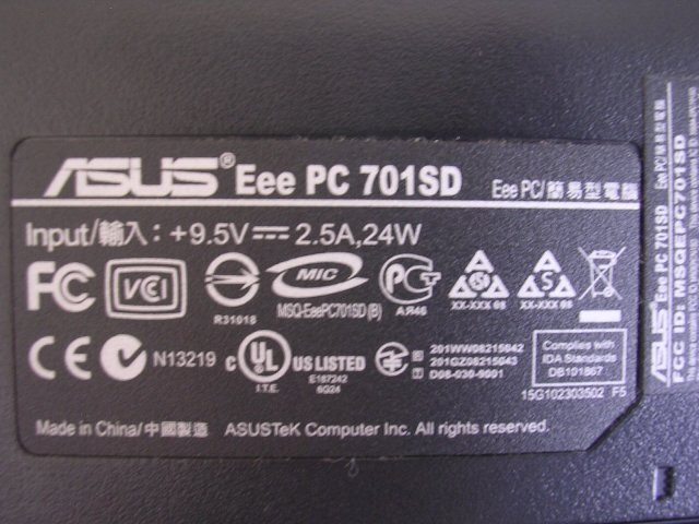 | ■MPC-701SD ASUS ミニノートPC 7インチ 2GB/8GBSSD/XP 純正AC/バッテリつき XP起動品 完全JUNK | ||