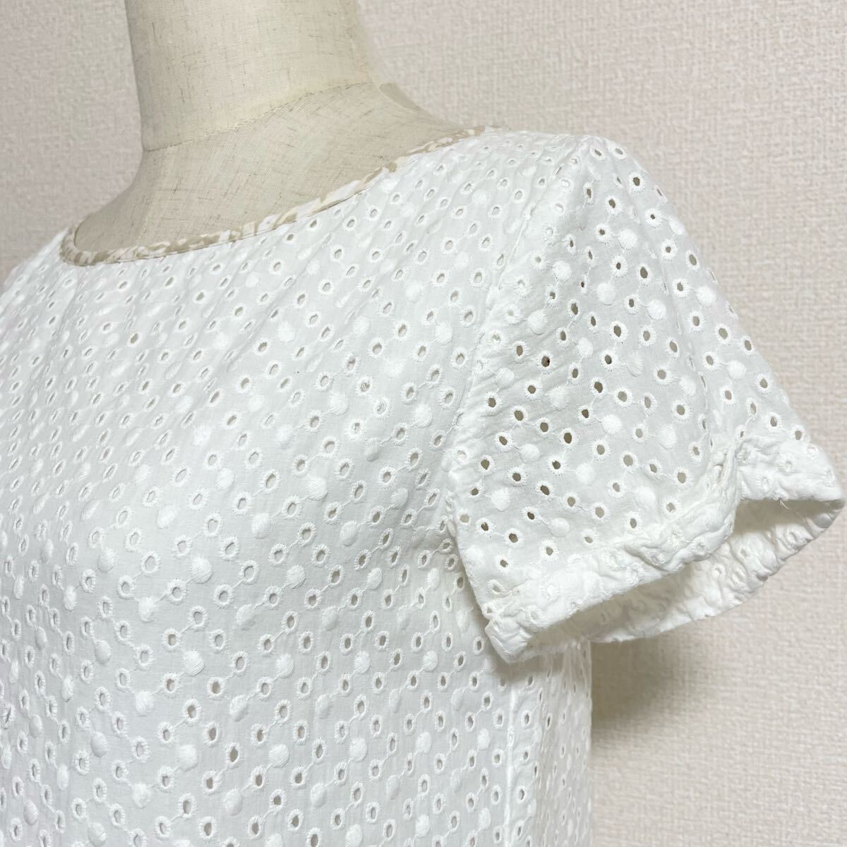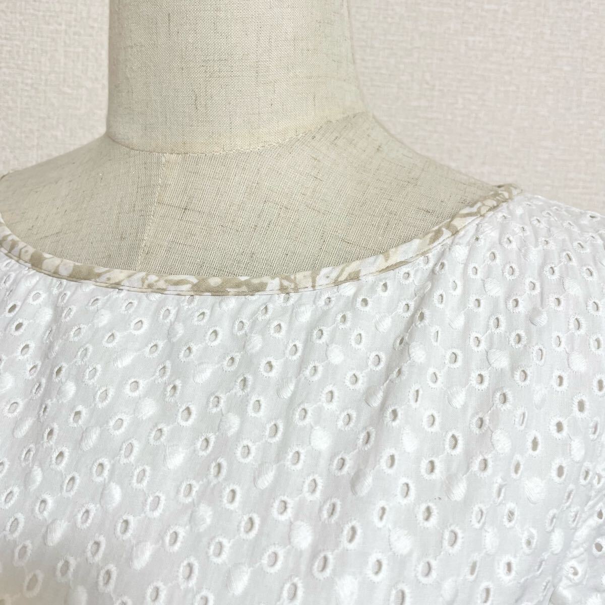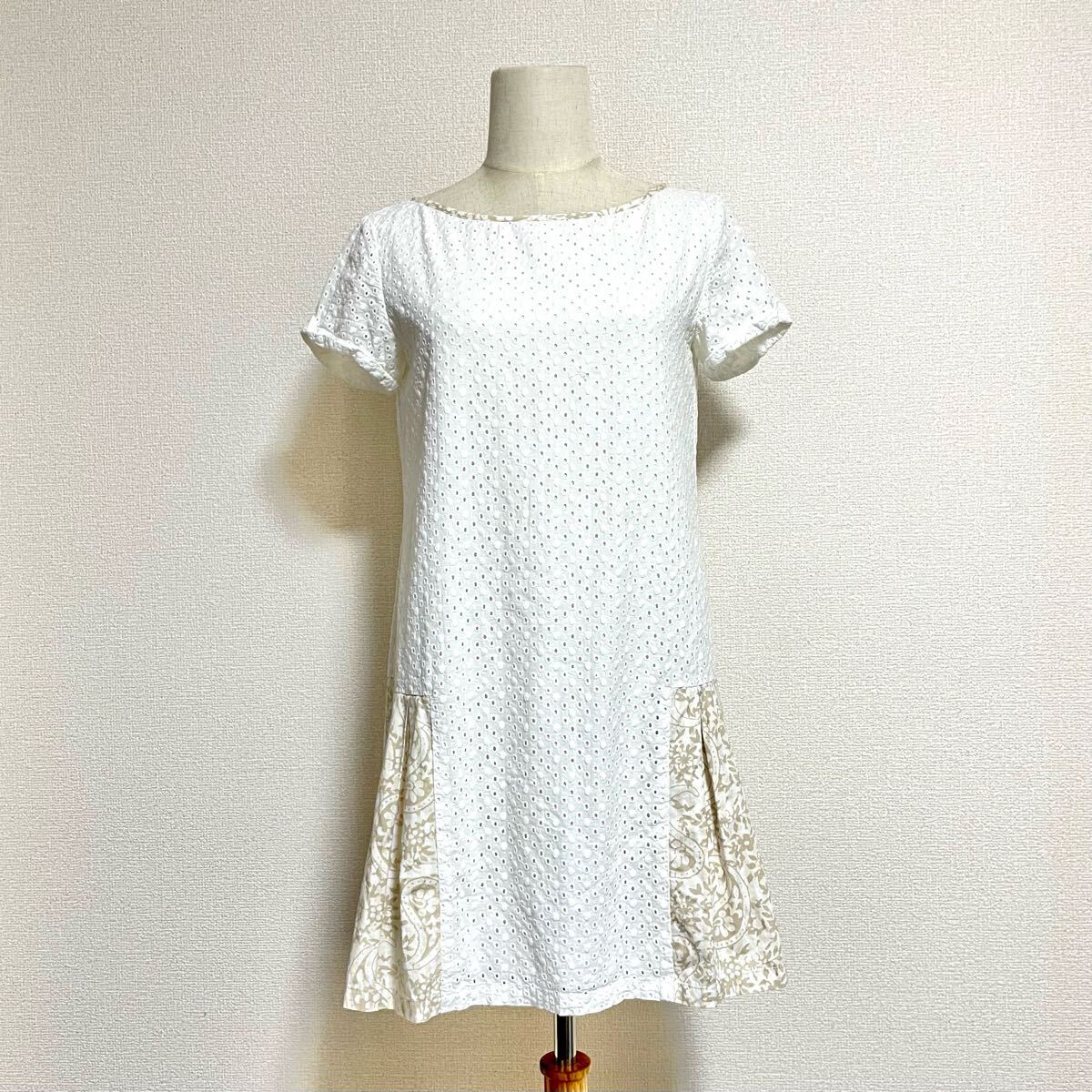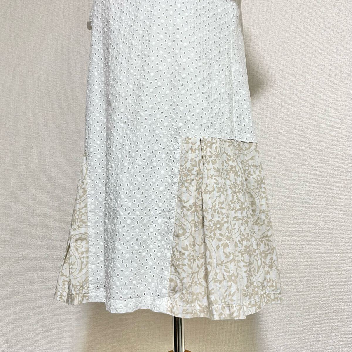 カットワークレースとペイズリー柄の生地がドッキングされた異素材mixのチュニックです。