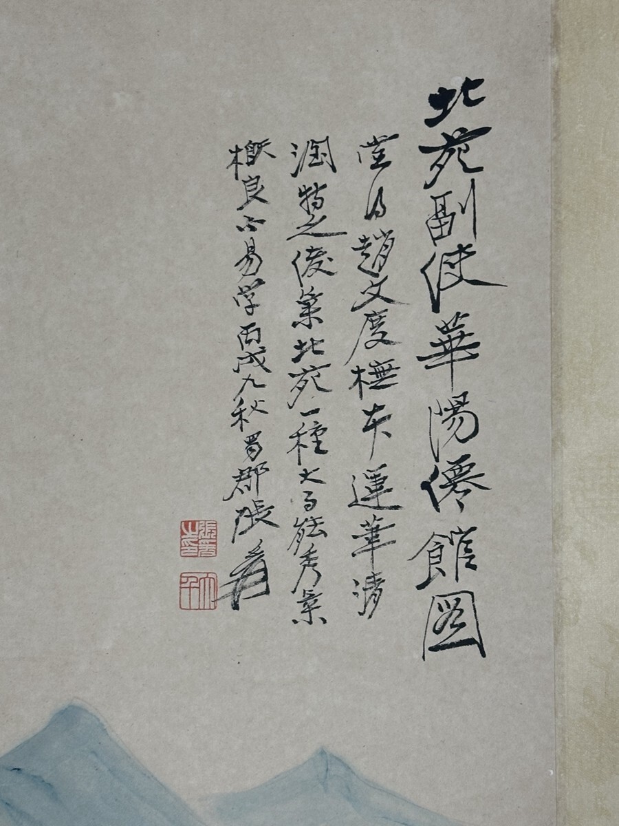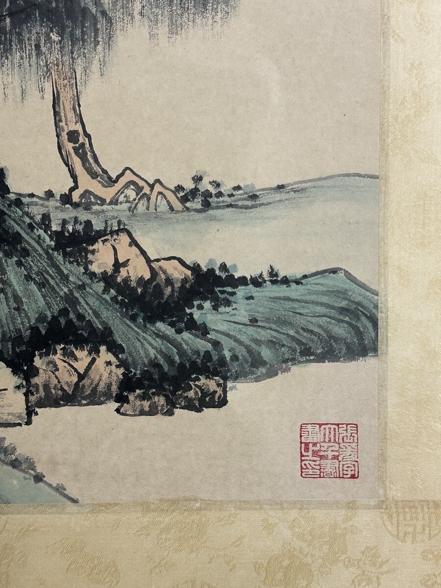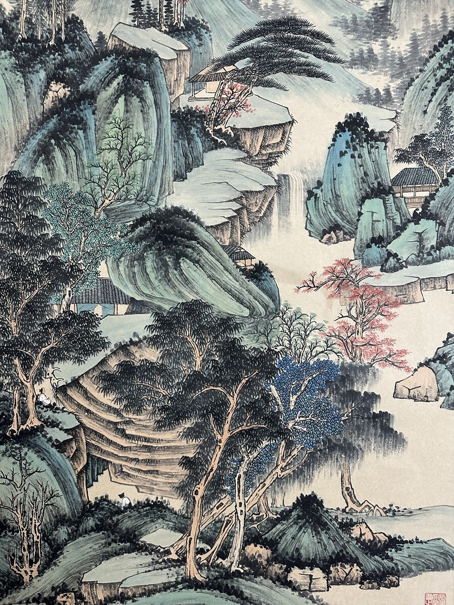 「張大千畫 北苑副使華陽仙館図」近代画家 肉筆紙本【仁】掛け軸 書画立軸 巻き物 中国書画 古美術 蔵出 畫芯約62×136cm