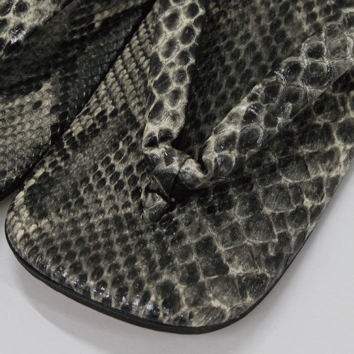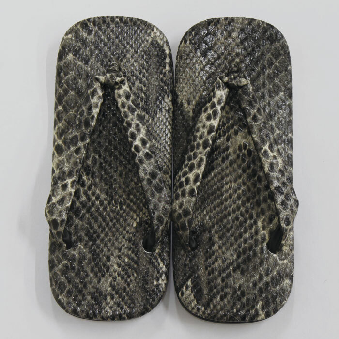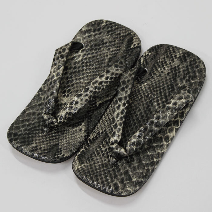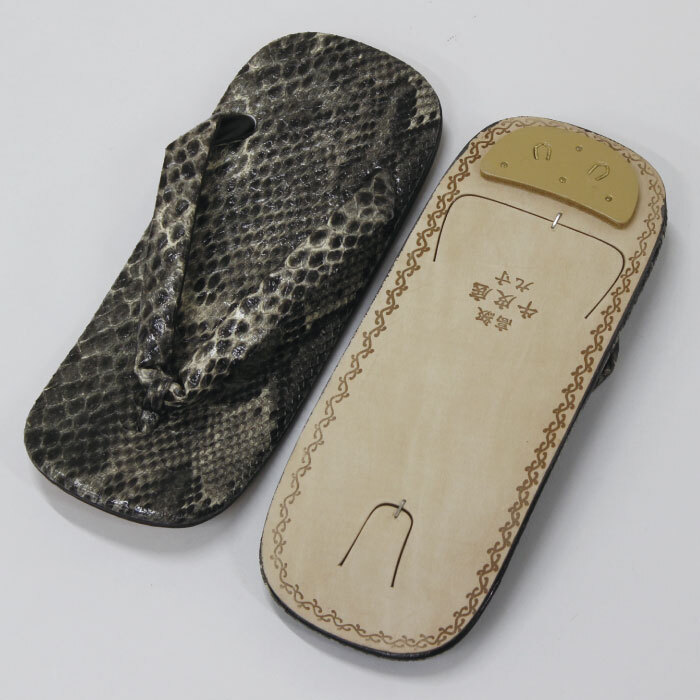 メンズ 牛革底雪駄蛇柄の粋なデザインが目を引く雪駄です。着物・浴衣・作務衣・甚平はもちろん、デニムなどの普段着にも合わせやすいデザインです!底は牛革を使用しているので、しっかりとした作りです。箱なし■サイズ長さ:約26.5cm・巾:約10.5cm■品質表示台表・鼻緒:合成皮革台底:牛皮