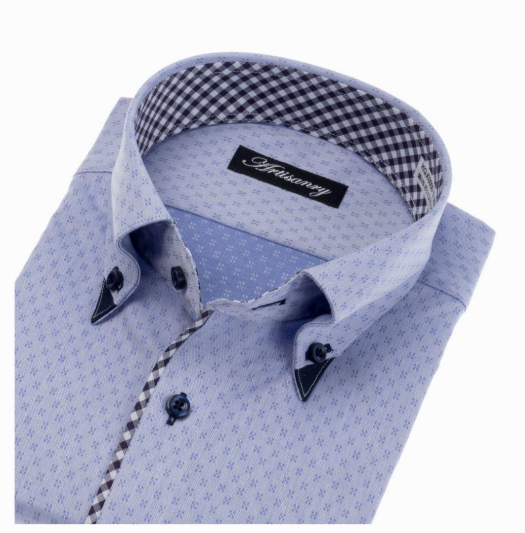 ■光沢のある小紋柄のシャドードビーのワイシャツは、ノージャケットでも映える存在感があります。もちろんジャケットと合わせても好印象。