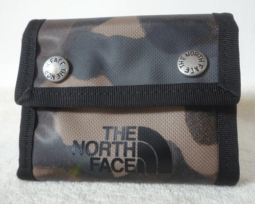 良品 ザ ノースフェイス THE NORTH FACE PVC カモフラ柄 カーキ系 三つ折り 財布 ウォレット コンパクト | ||