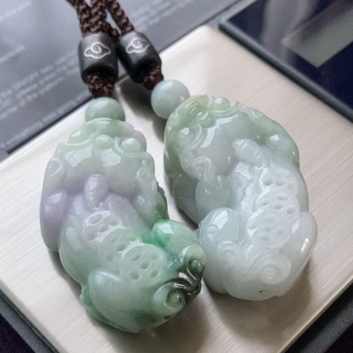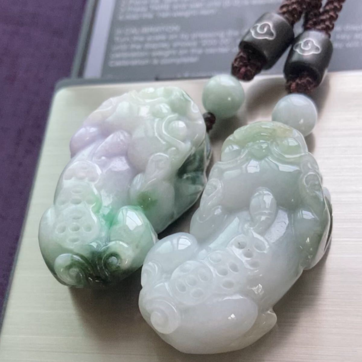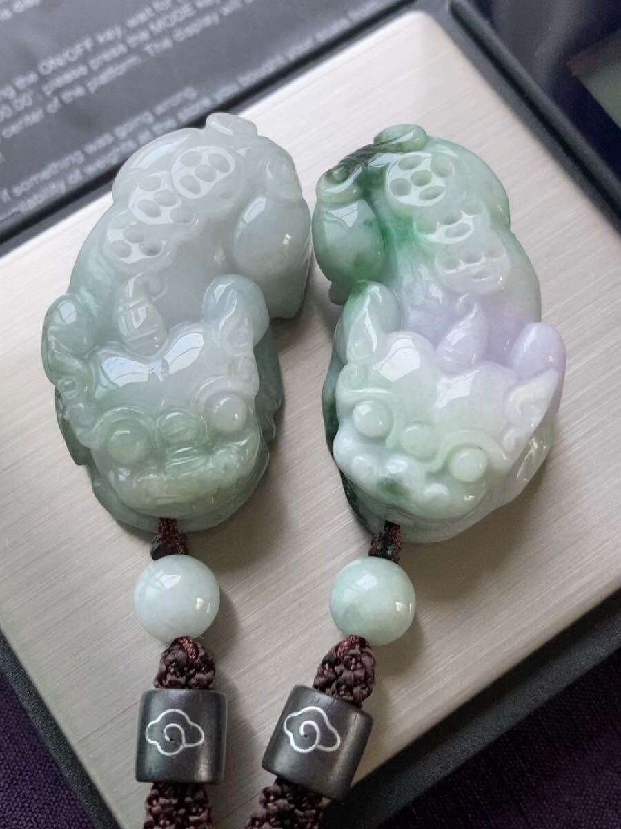翡翠 天然石 翡翠ネックレス 翡翠ペンダント ネックレス ペンダント 本翡翠 大粒貔貅(ひきゅう) ペア