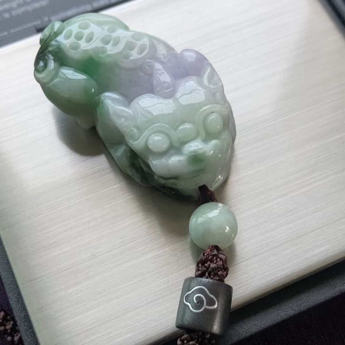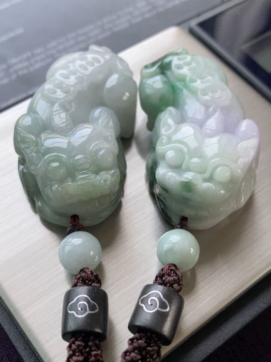 翡翠の肉質がよく、口、歯、目もしっかり彫刻されています、迫力があり、貔貅が凜々とした姿が格好良いです。