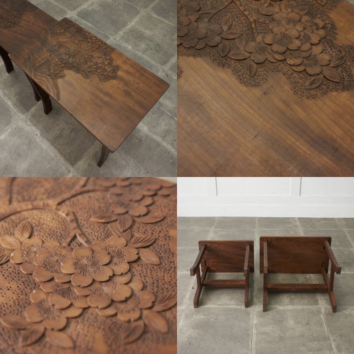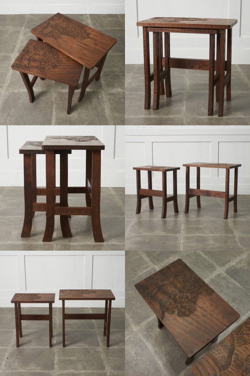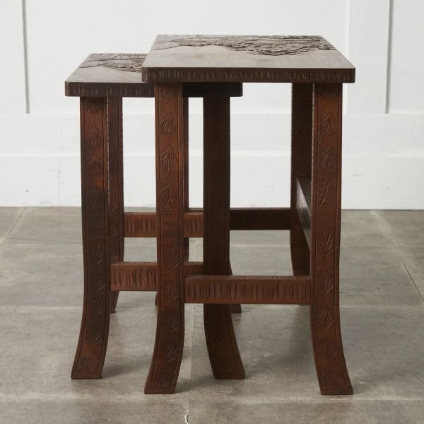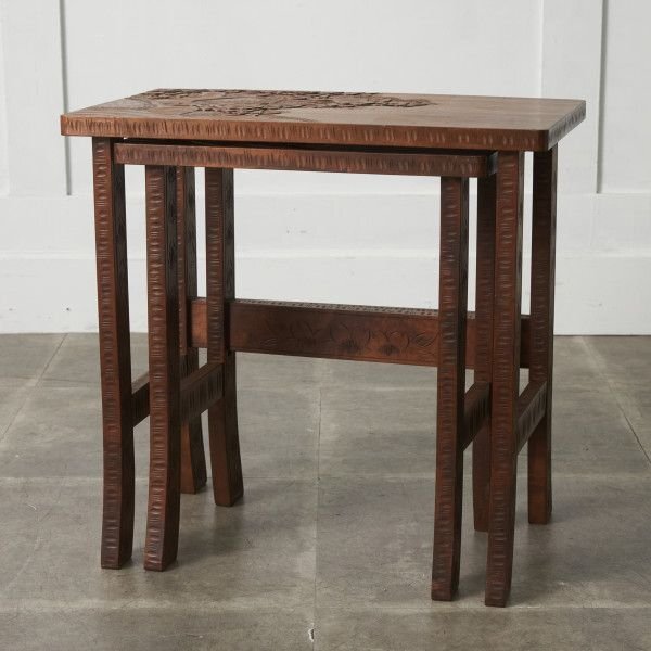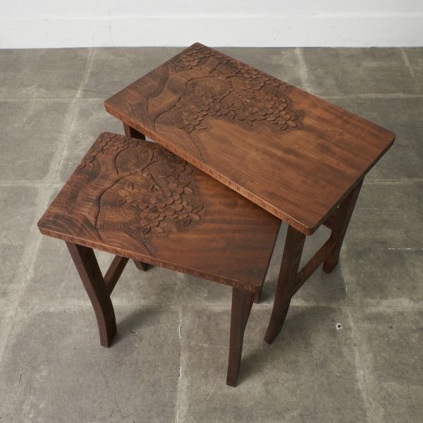 長野県伝統工芸品、軽井沢彫ネストテーブルです。
