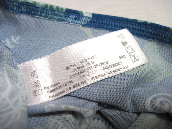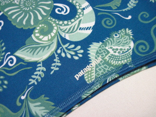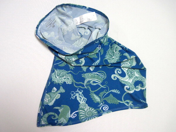 patagonia  Capliene Sun Mask       ポリエステル100%(飾り付け部分は除く)      青ベースに緑でイラスト(写真参照)      USA製