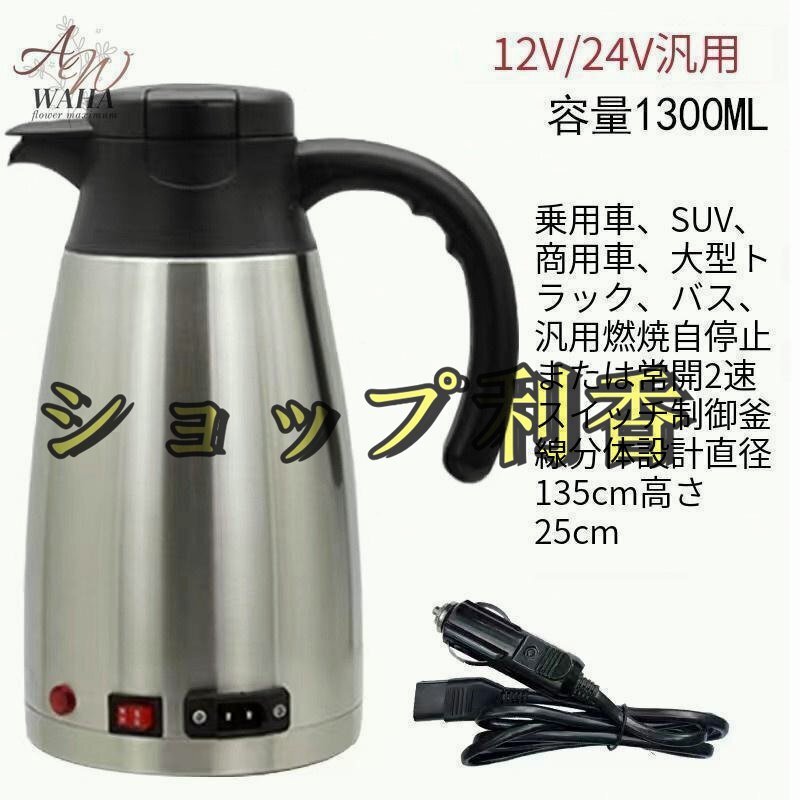 車用電気ポット DC12V-24V兼用 循環加熱 車載 電気ケトル カーポット 大容量1200ml 車用湯沸かし器 カーヒーター グレード304ステンレス