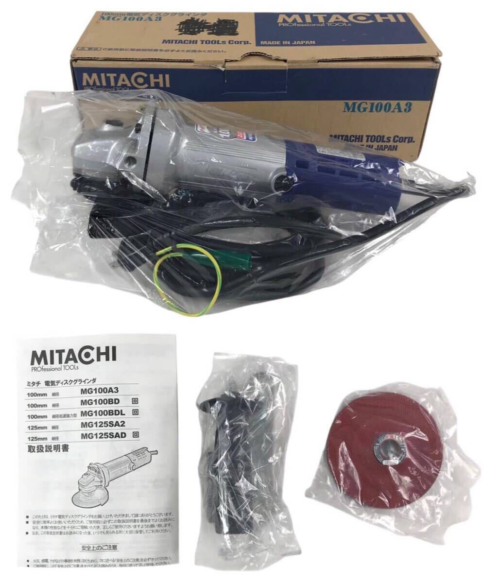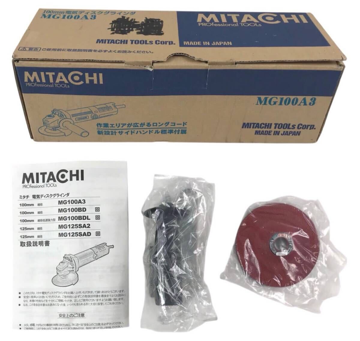 | 【商品名】 ミタチ 100mmディスクグランダ MG100A3 【型番】 MG100A3 【状態】 ★開封済み、未使用品となります! 【付属品】 未使用品の為、付属品完備。 【仕様】 ■無負荷回転数(min[[の-1乗]]):12000 ■砥石径(mm):100 ■消費電力(W):735 ■定格電流:7.6A ■電源:AC100V ■電源コード長さ:3.5m ■カーボンブラシ:CB1100 握り径56mm、最大出力1000Wの強力モーターを搭載。 ※あくまで中古品でございますので神経質な方は購入お控えください。 ※他サイトでも出品しております。他サイト購入された場合、その際は、申し訳ございませんが取引を削除させて頂きます。何卒よろしくお願いします。 | |||