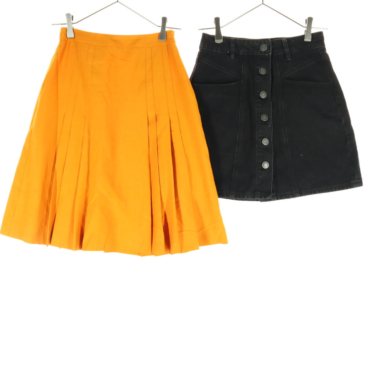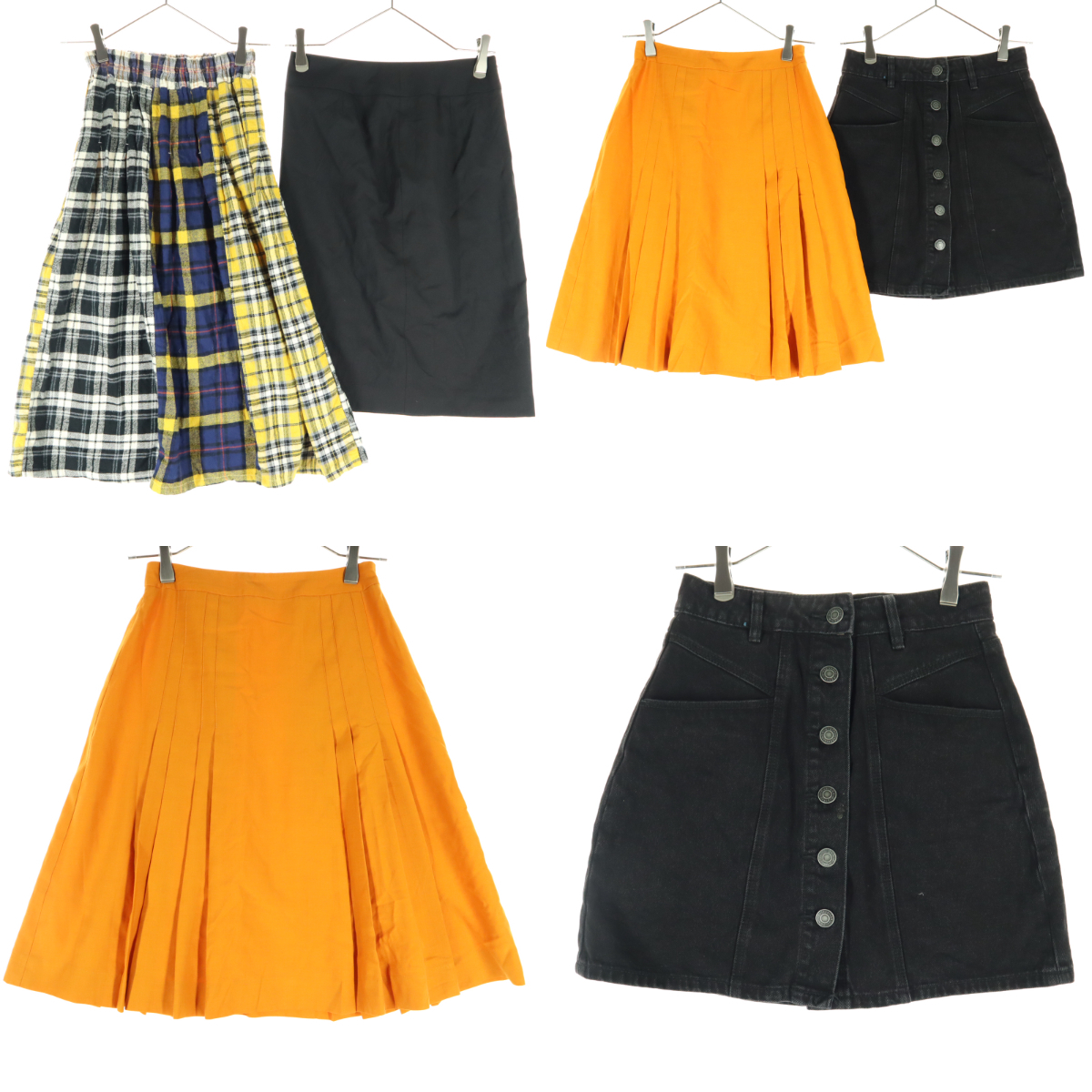 古着 まとめ売り 4点 レディース 春夏秋冬 カジュアル サイズS スカート ミニ ひざ丈 タイト プリーツ デニム チェック柄 黒 オレンジ