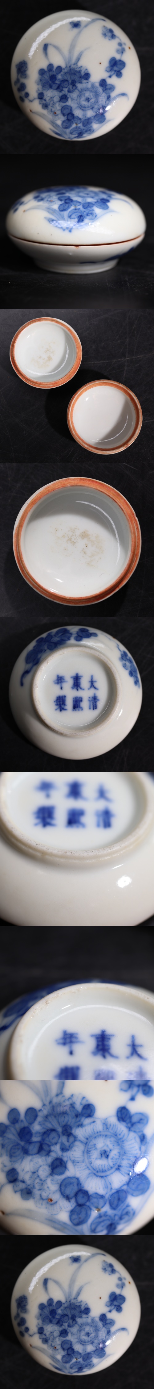 | 大清康熙年製 底款 染付 草花文 小型 香合 / 清 康熙 中国美術 香道具 煎茶道具 .G1869 |