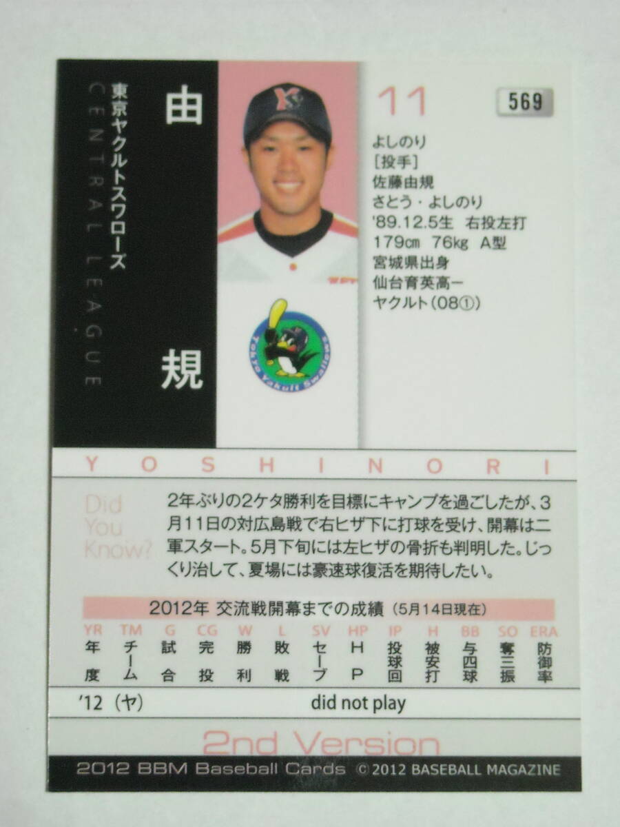 佐藤由規 #569 BBM 2012 東京ヤクルトスワローズ 宮城県仙台市 仙台育英学園高等学校卒 通算防御率3.66 534イニング
