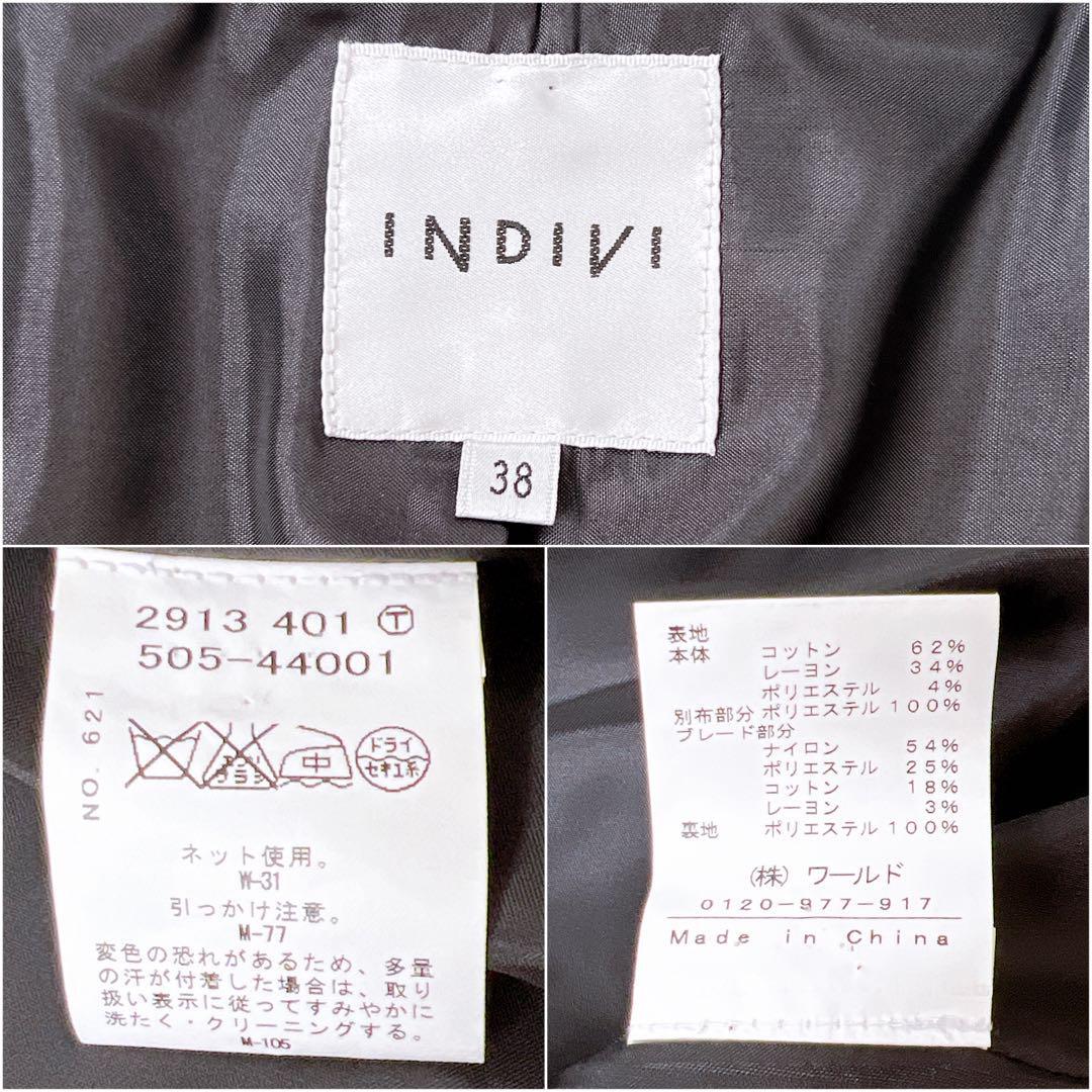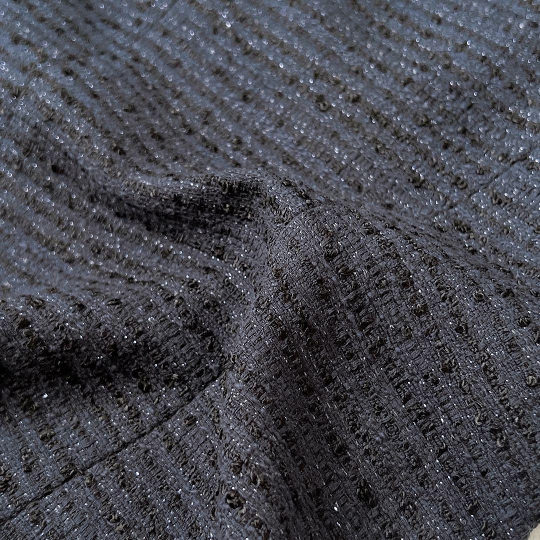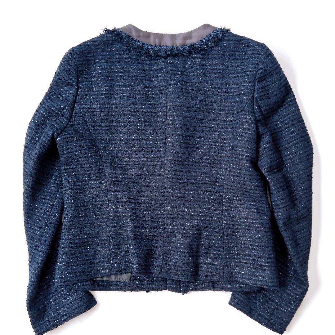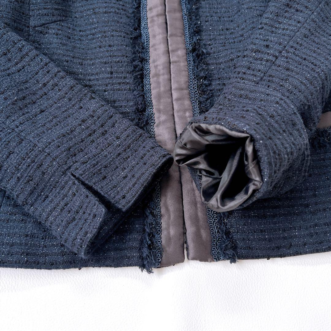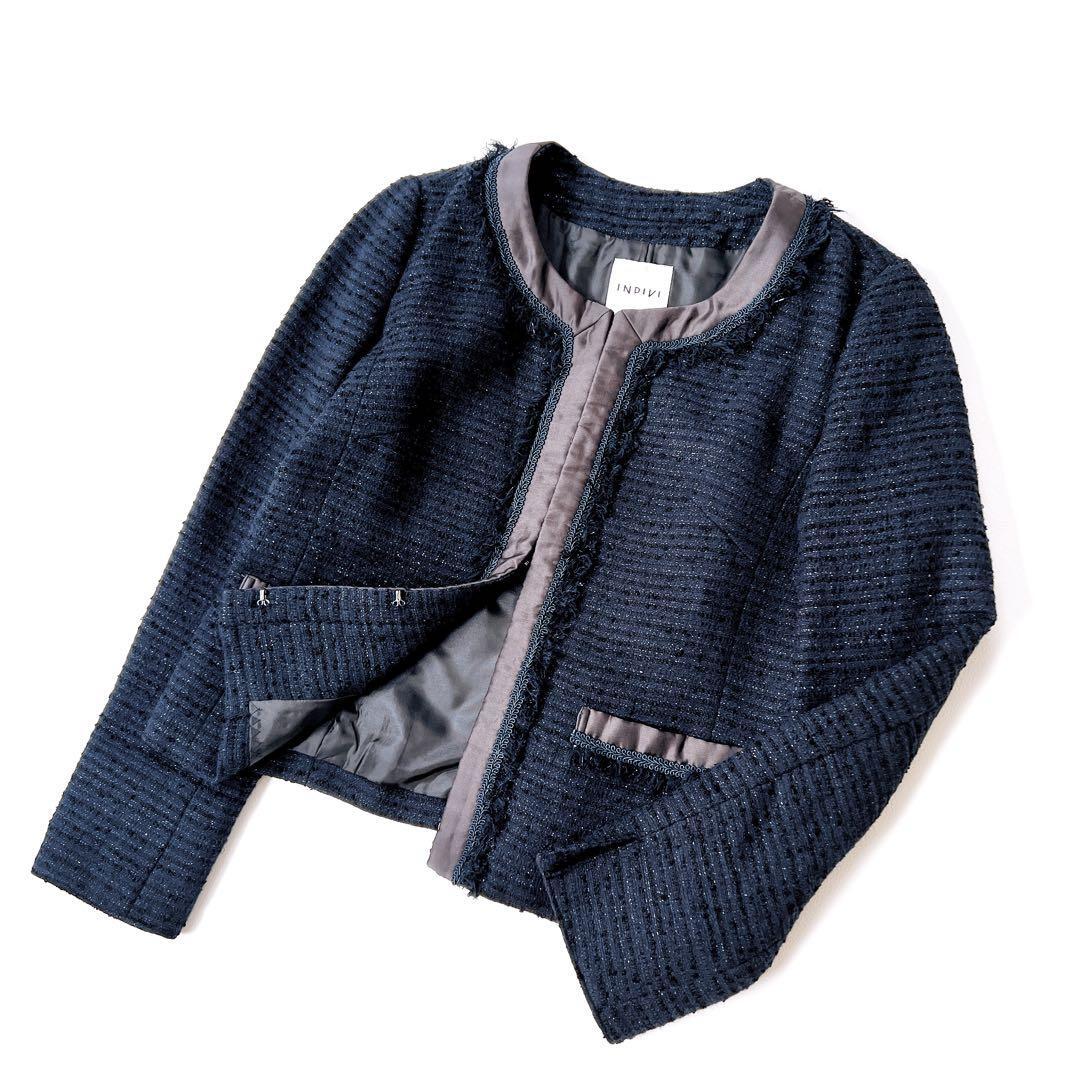 【美品】インディヴィ ラメツイード セレモニー ノーカラージャケット 紺 38