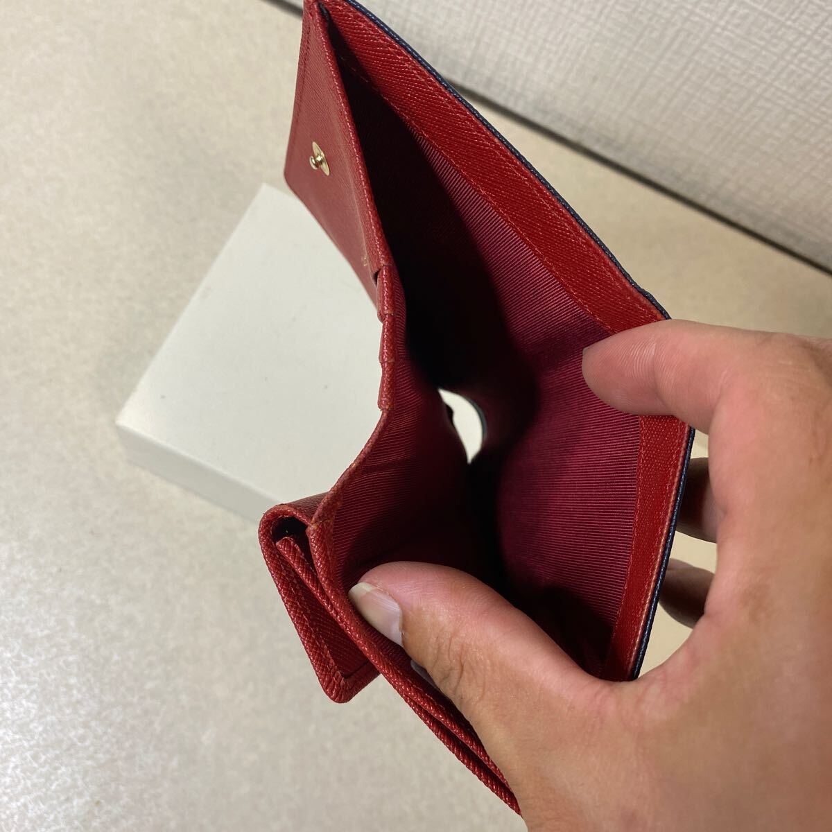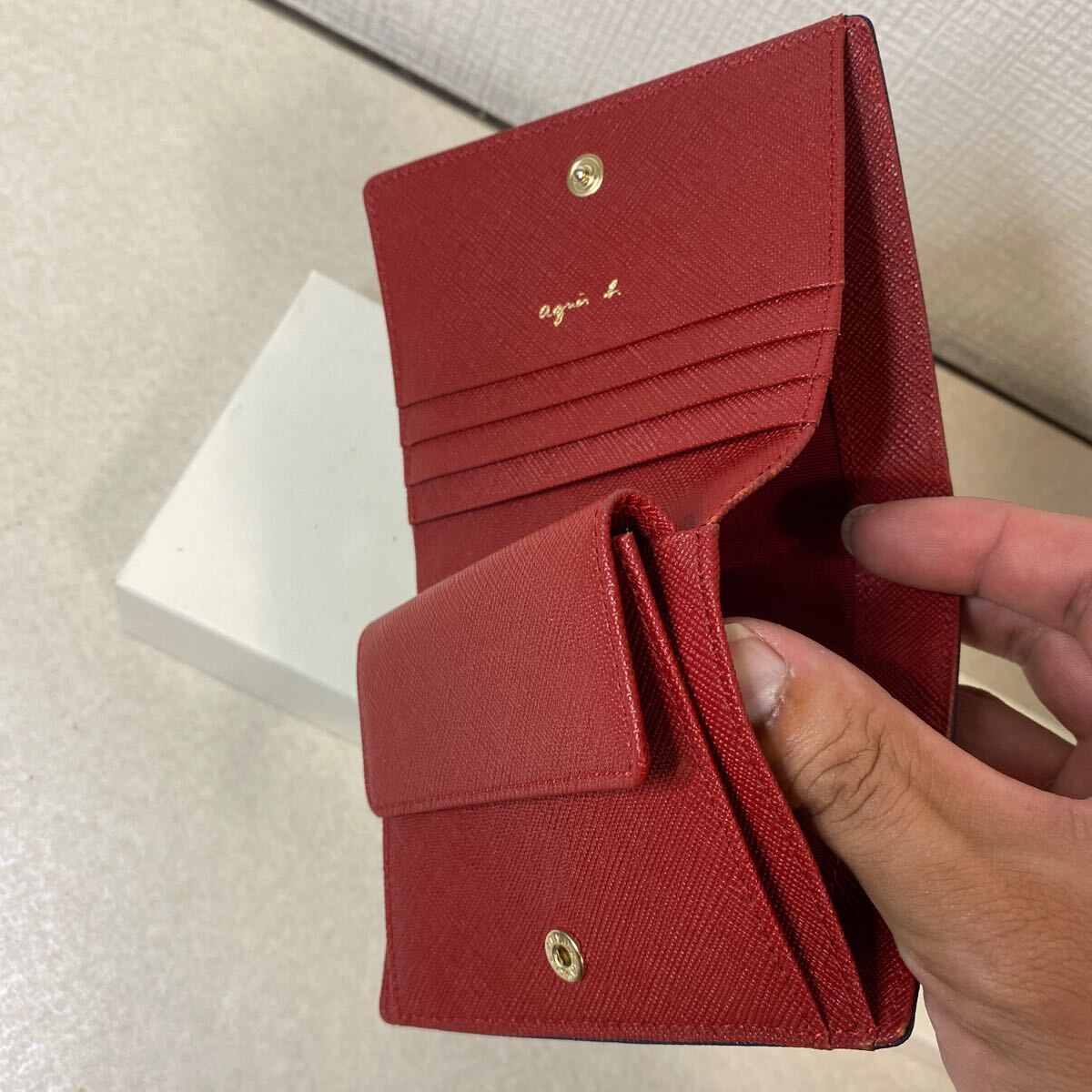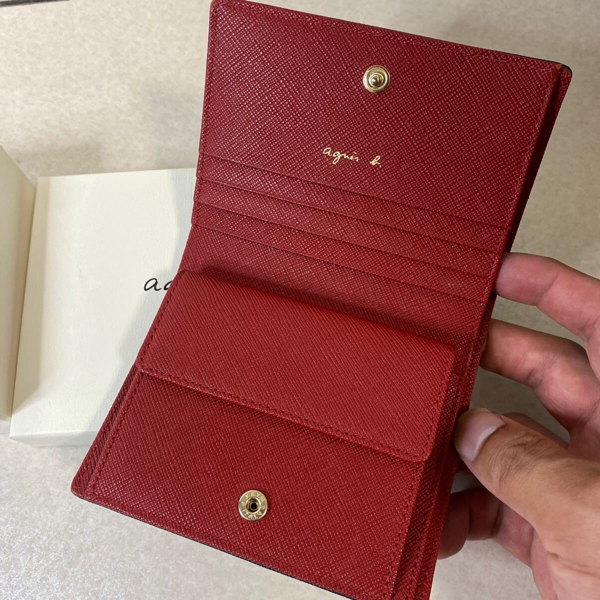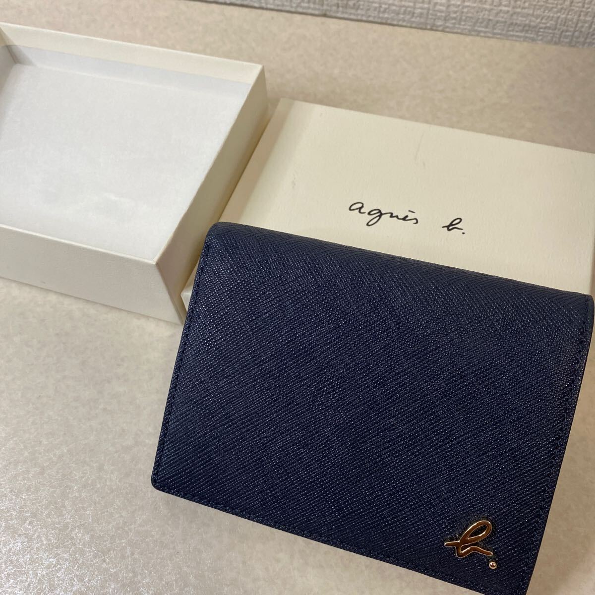 ・新品未使用品 agnes b. 2つ折り財布 アニエスベー 紺 赤 レディース 元箱付き