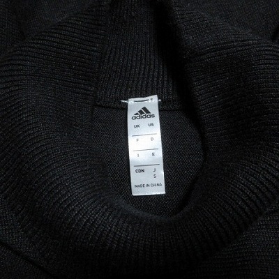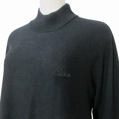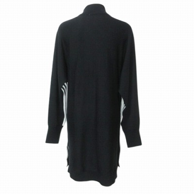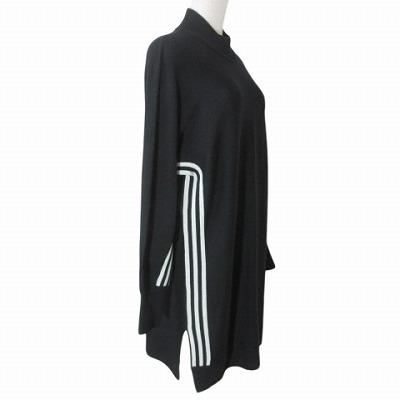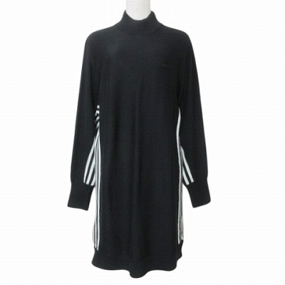 アディダス ゴルフ ニット ワンピース ひざ丈 長袖 ドルマンスリーブ ハイネック スリーストライプ ロゴ刺? ウール混 ウェア S 黒 白 X