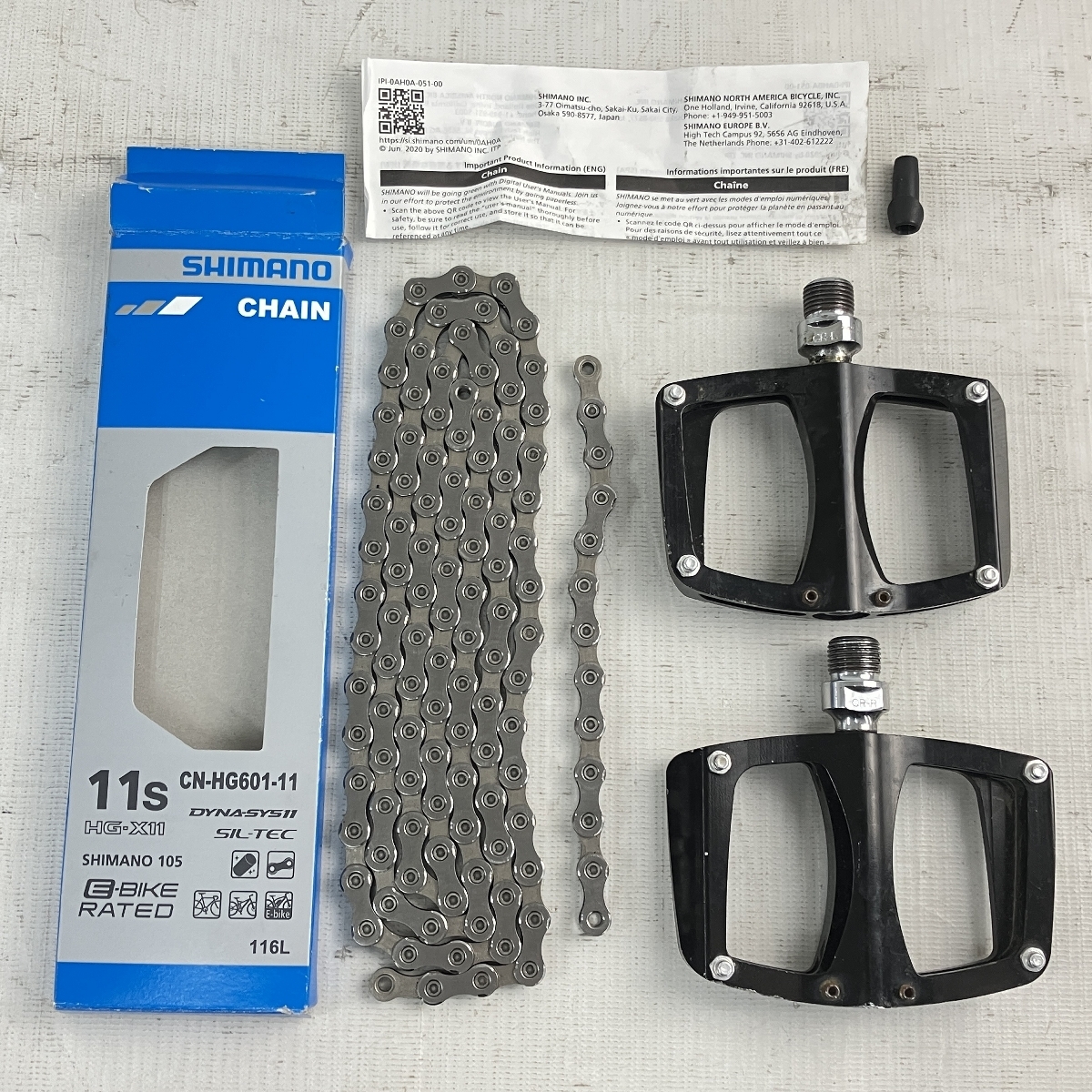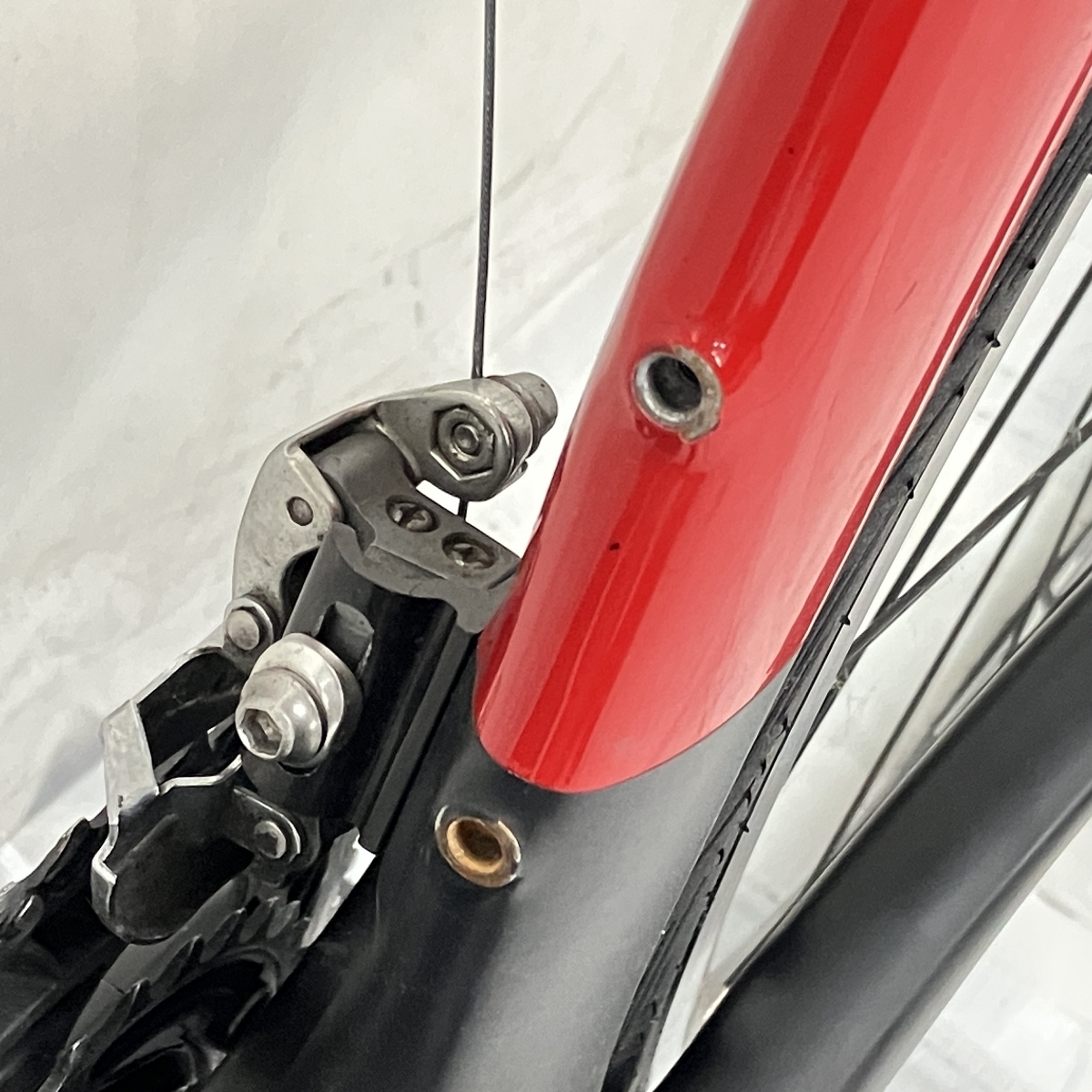 【状態】 傷汚れあり使用感が見受けられます。 【動作】 ギアチェンジ上下動作、後ブレーキ動作確認しております。 タイヤのパンクはございません。 ワイヤーを通す部分が無く、前輪のブレーキが効かないため、 ジャンク品として出品致します。 購入者様自身での修理をお願い致します。 【パーツ構成】 ・Fディレイラー:SHIMANO 105 ・Rディレイラー:SHIMANO 105 ・レバー:SHIMANO 105 ・ホイール:SHIMANO RS 【フレームサイズ】 ・シートチューブ(C-T) 約490mm ・トップチューブ(ホリゾンタル換算) 約540mm ・ヘッドチューブ 約110mm ※メジャーで測っているので誤差がございます。 【付属品】 ペダル その他画像参照 ※付属品に関しては画像にてご確認いただけるものが全てとなっております。 ※こちらの商品は当店の販売証明書をお付けして販売させて頂きます。 ※一部商品は在庫自動連携しているため、ご購入後に在庫がない場合がございます。 ご了承の上、ご購入くださいませ。 こちらの商品には防犯登録に必要な販売証明書を添付してお届けさせていただきます。 また、お客様の送料負担軽減の為、前輪、後輪を取り外し梱包して発送致します。 (自転車の形状によってはサドル・ハンドル・泥除け等の付属品も含む) |