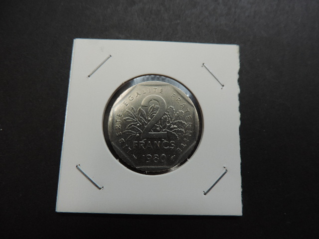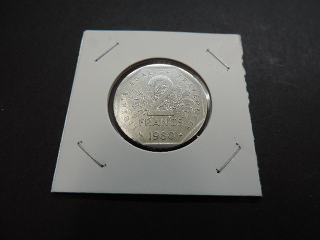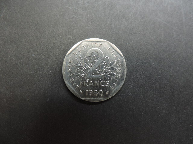 ★フランス 2フラン★ LIBERTE EGALITE FRATERNITE 1980 重量:約7,52g・サイズ:約26,41㎜ 中古品