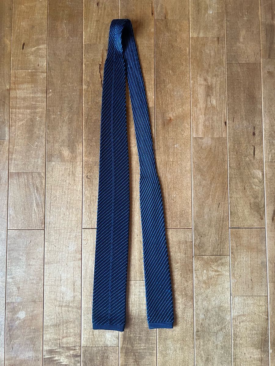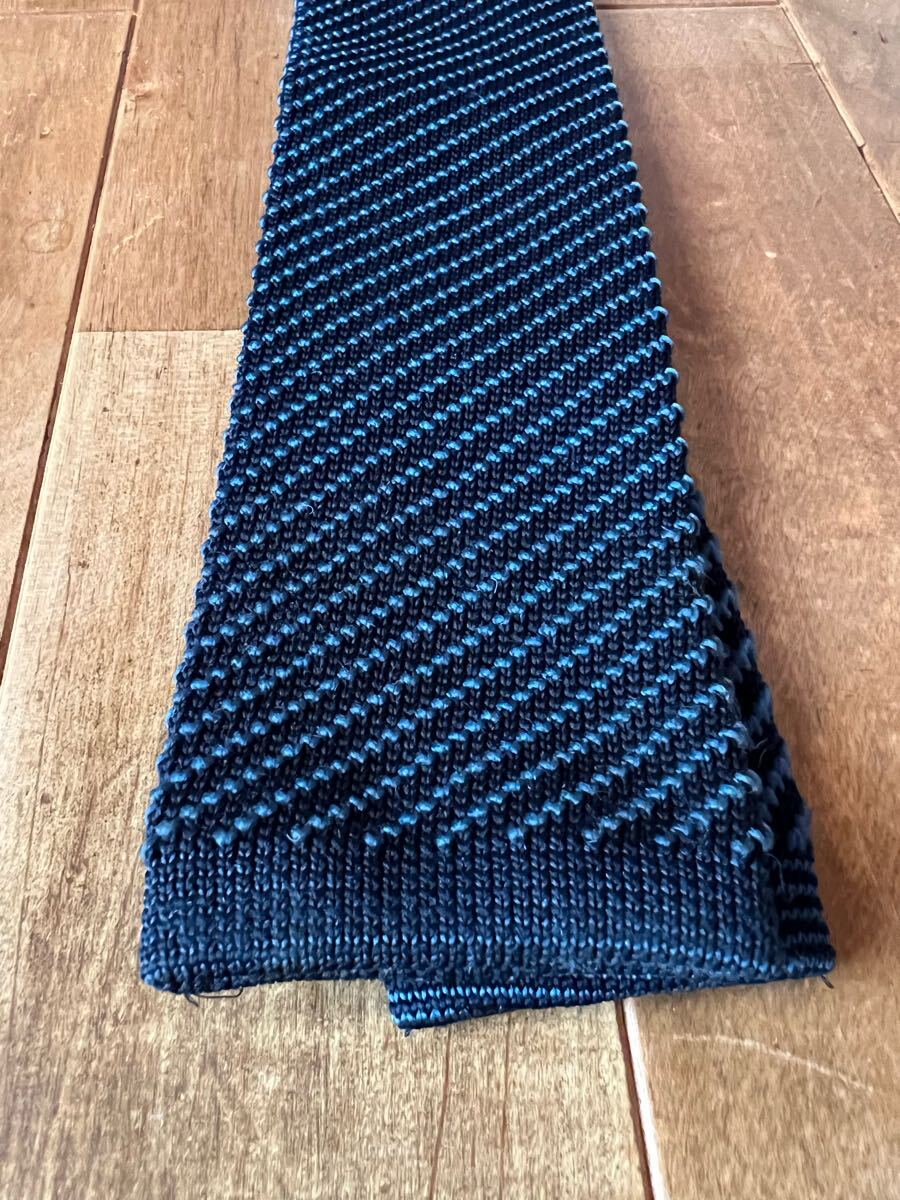 ニットタイでは珍しいレジメンタルストライプで、見つけて試着し、即購入したお品です。