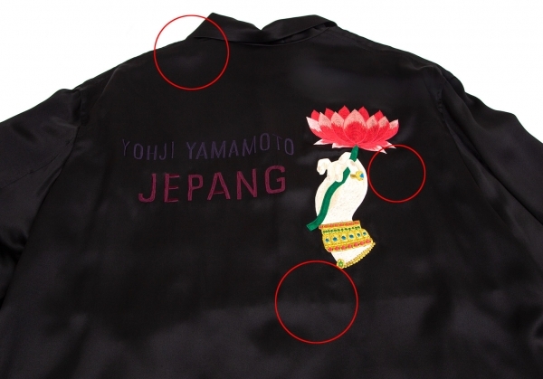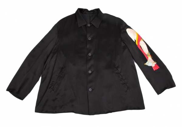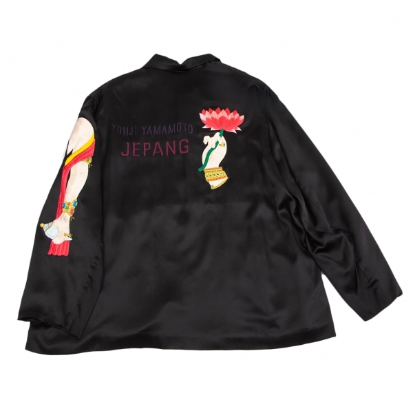 ヨウジヤマモト プールオムYohji Yamamoto POUR HOMMEJEPANG 蓮刺繍サテンシャツジャケット 黒M |