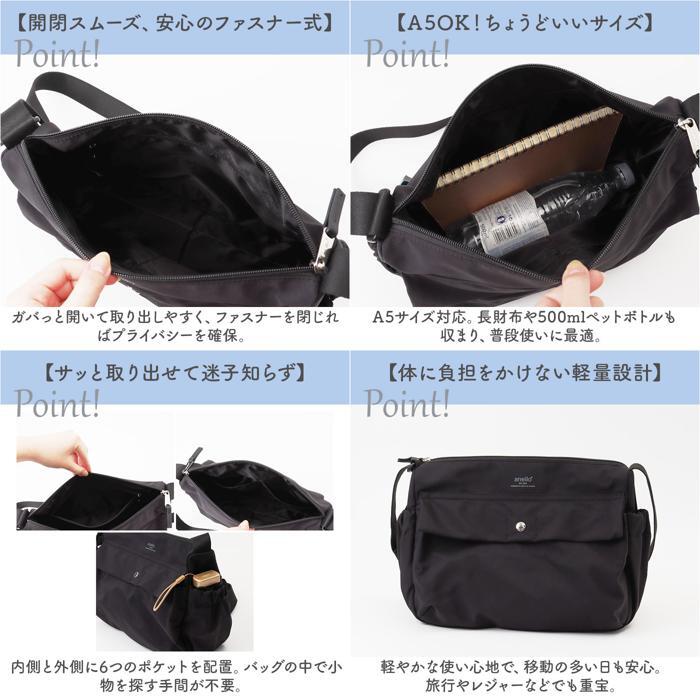 商品説明 | ・・【サッと持ち出せてお出かけの相棒に】 ・色んなシーンで大活躍◎anelloのアビーシリーズから、ミニショルダーが新登場。 ・【デザインと実用性を兼備☆】 ・前面のフラップポケットがアクセント!トレンド感のあるデザインに加え、使いやすさも重視。 ・【両手が空いてストレスフリー】 ・長さ調節可能なショルダーベルトを使って、肩掛けや斜め掛け。アクティブに動く日も快適。 ・【開閉スムーズ、安心のファスナー式】 ・ガバっと開いて取り出しやすく、ファスナーを閉じればプライバシーを確保。 ・【A5OK!ちょうどいいサイズ】 ・A5サイズ対応。長財布や500mlペットボトルも収まり、普段使いに最適。 ・【サッと取り出せて迷子知らず】 ・内側と外側に6つのポケットを配置。バッグの中で小物を探す手間が不要。 ・【体に負担をかけない軽量設計】 ・軽やかな使い心地で、移動の多い日も安心。旅行やレジャーなどでも重宝。 ・【ちょっとの雨なら大丈夫】 ・汚れや水滴を弾きやすい、両面撥水加工済み。お手入れも拭き取るだけ。 ・(※)完全防水ではありません。 ・【お気に入りを選べるカラー】 ・年代や性別問わず持ちやすいカラーをラインナップ。色違いで揃えるのもおすすめ! ・【ポケット仕様】 ・内側:ファスナーポケット×1、オープンポケット×2 ・前面:マグネット式フラップポケット×1 ・サイド:ギャザーポケット×2 |