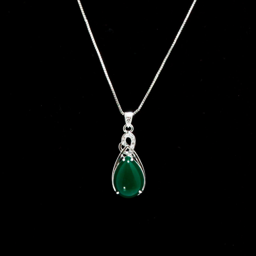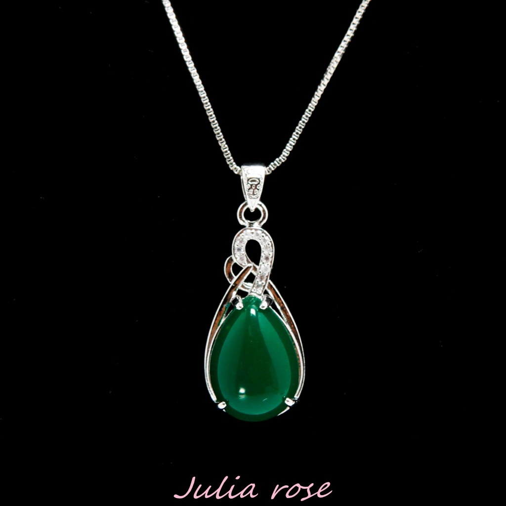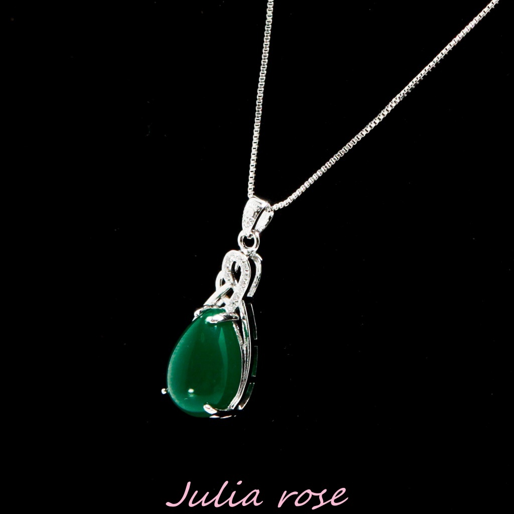 *しずく型ペンダントトップのカラー(グリーン)が 胸元を華やかに