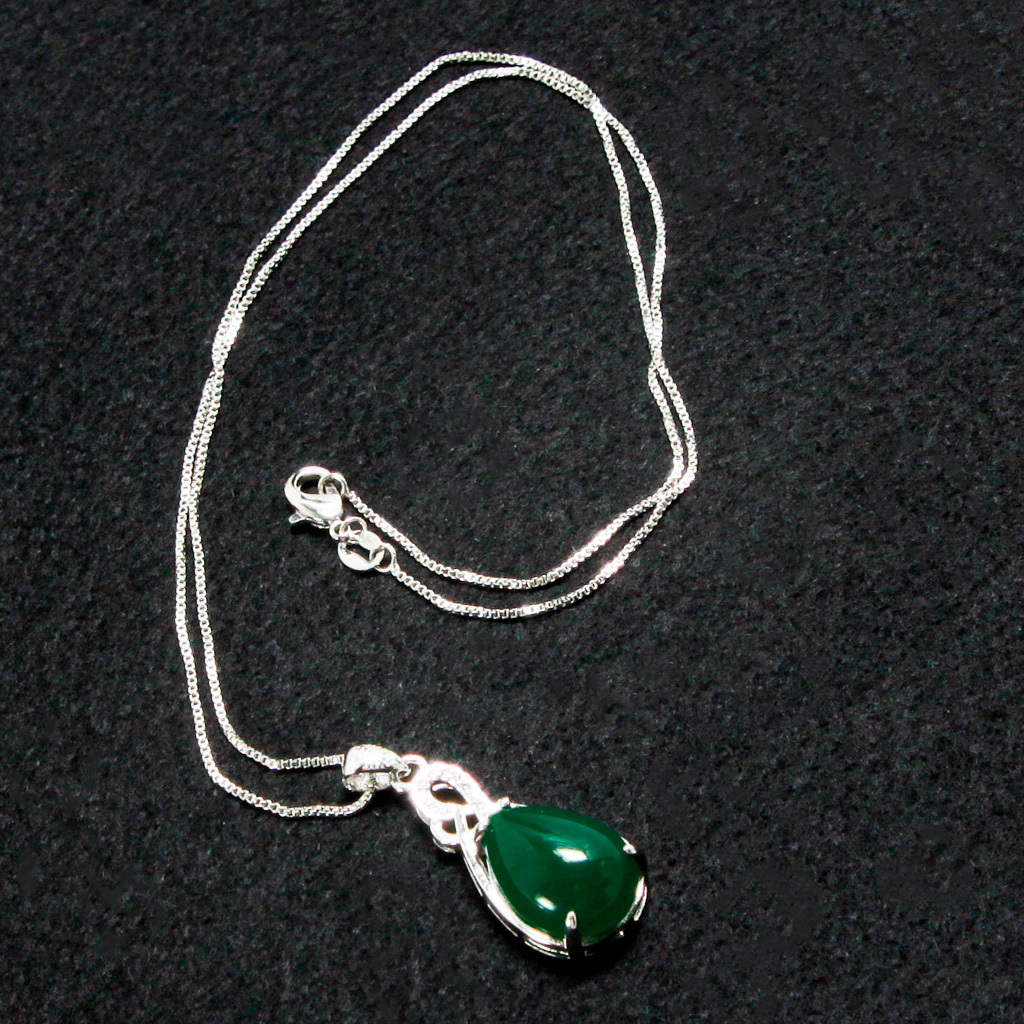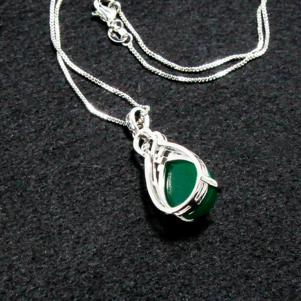 グリーンのしずく型ペンダントネックレス シルバーカラーチェーン グリーンのラインストーン 新品