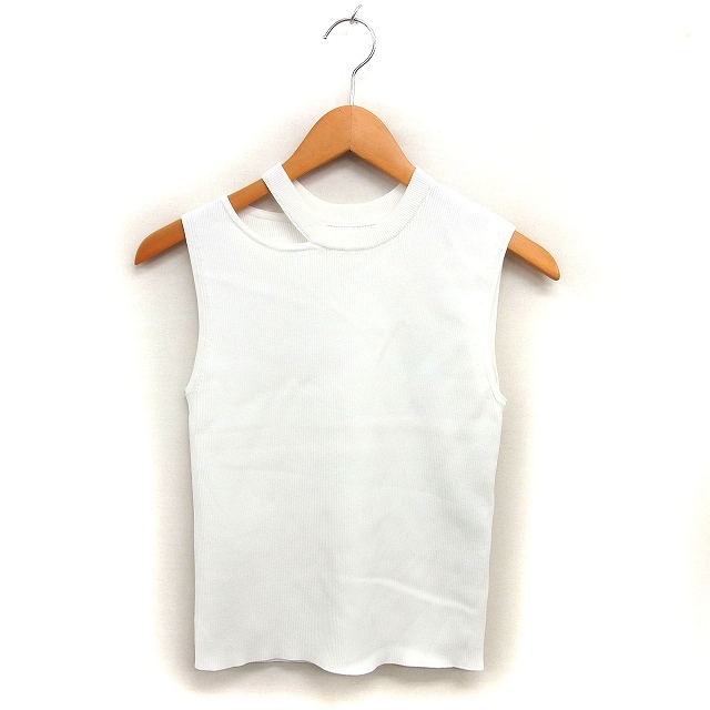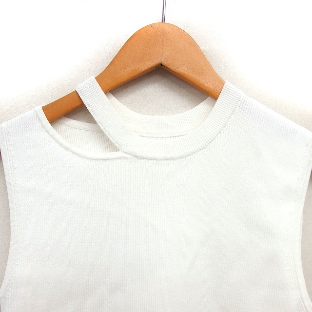 未使用品 ダイアグラム Diagram タグ付き リブ ライン ニット カットソー透け感 クロップド ノースリーブ 36 白 ホワイト /NT28 レディース