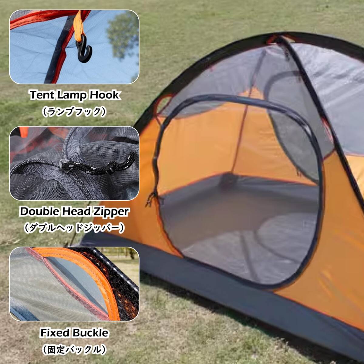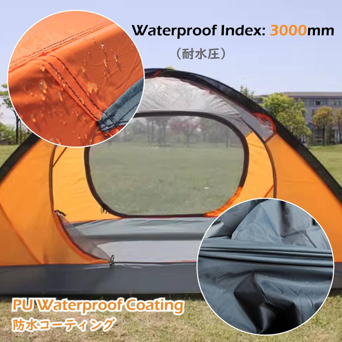 ?【アウターテント】- 210Tポリエステル素材を採用、PU防水コーティングを施し、耐水圧>3500mm、UVカット。出入口を2ヶ所に装備、外に閉鎖可能の換気窓もあり、通気性にバッチリの3シーズン テント。