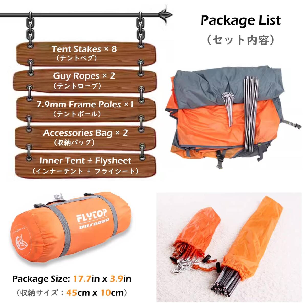 ?【テントポール】- 航空アルミニウム合金を採用、軽量で高い耐久性があり、7.9mm。ショックコードでポールとソケットが一体となっているので素早い設営、撤収が可能です。