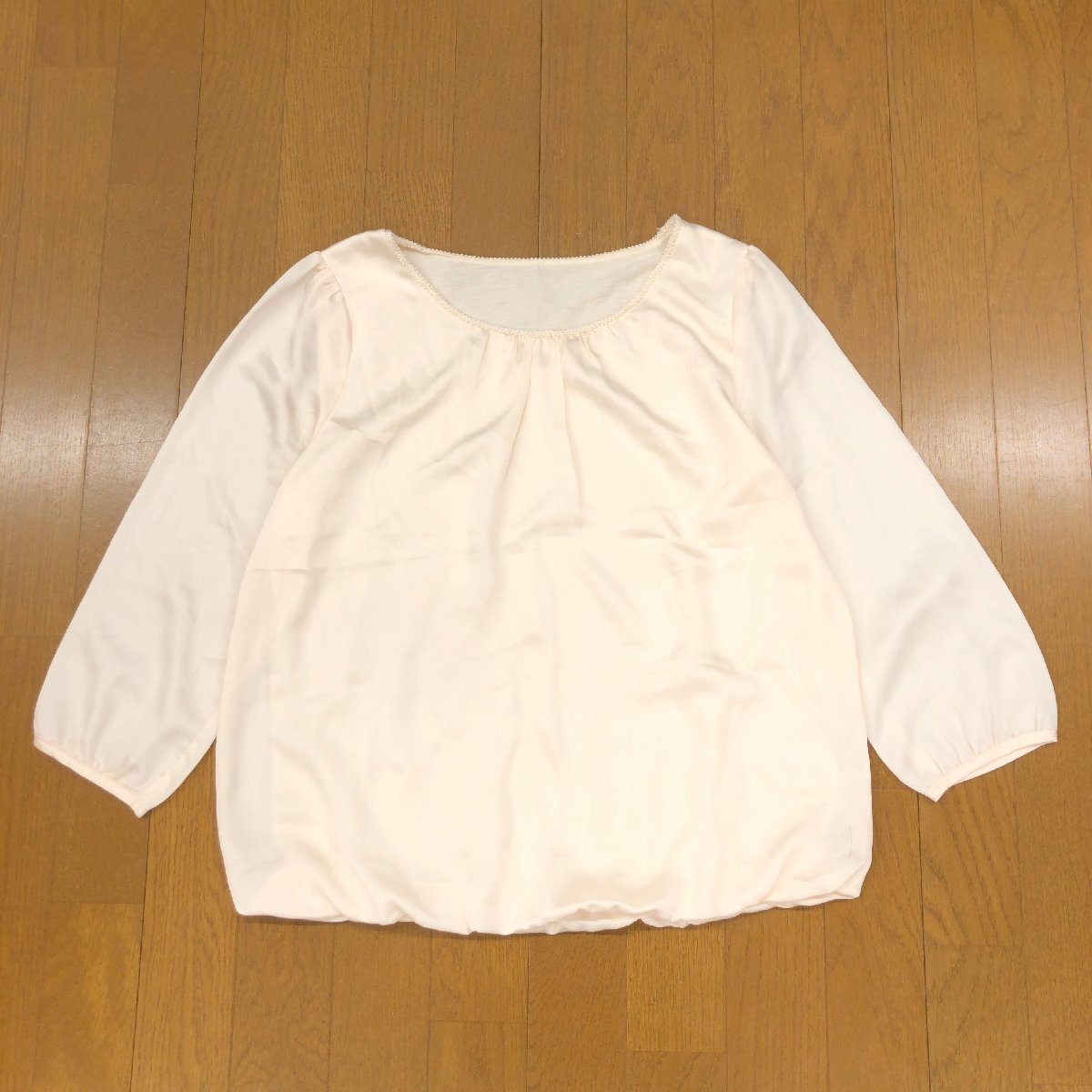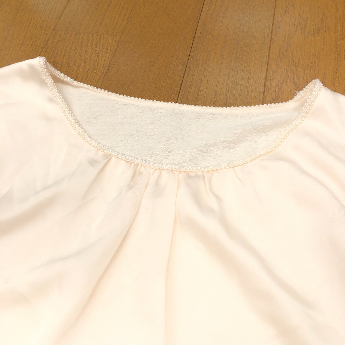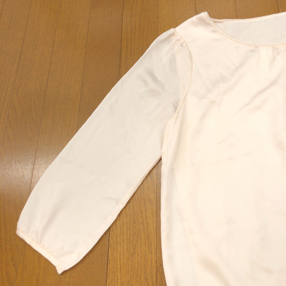 美品 NATURAL BEAUTY BASIC ナチュラルビューティベーシック サテン ギャザー ブラウス L オークル シャツ 長袖 カットソー レディース