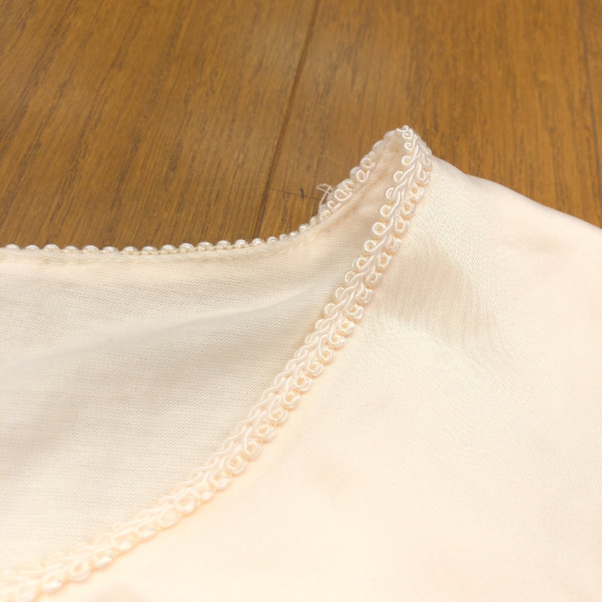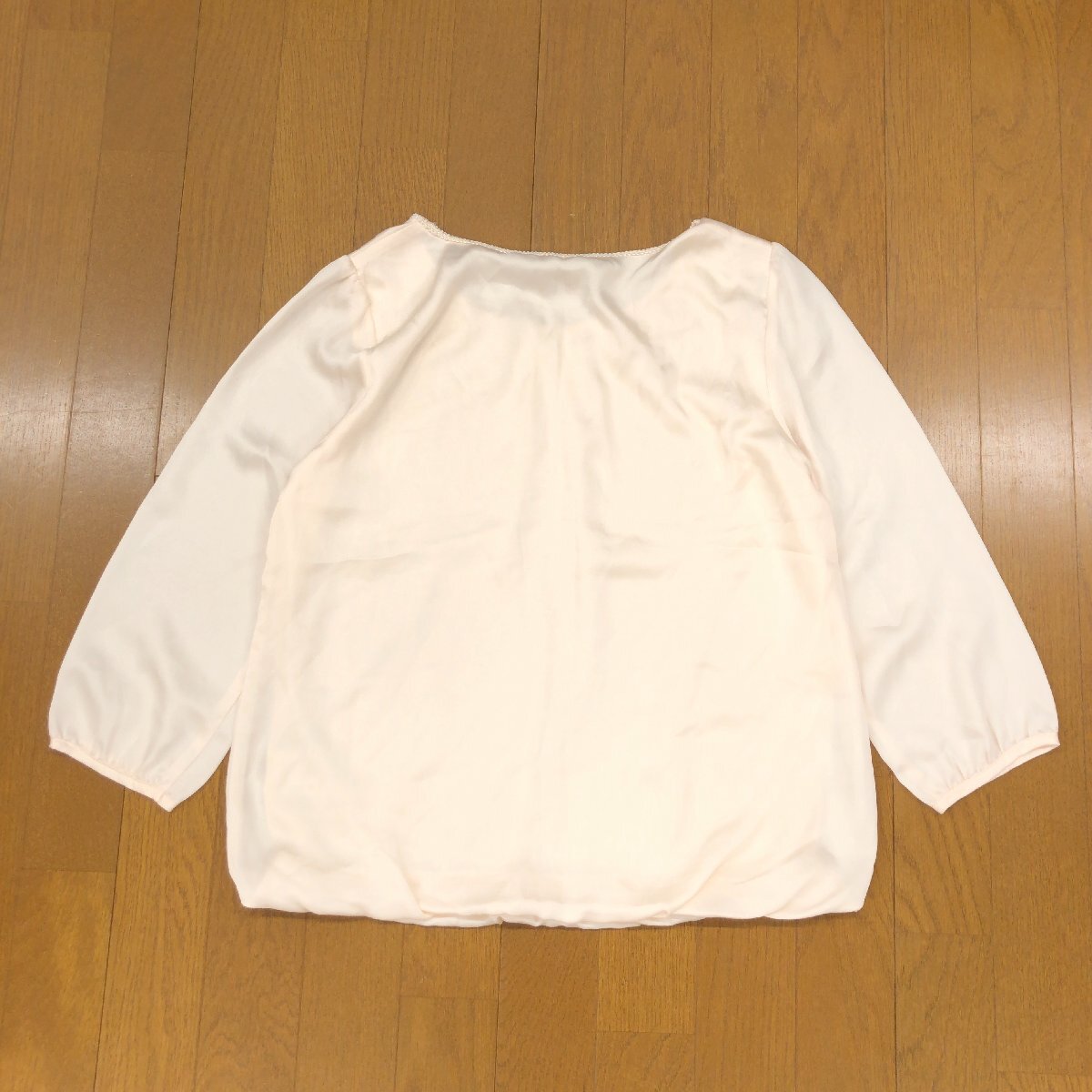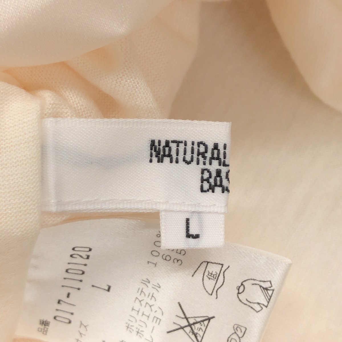 美品 NATURAL BEAUTY BASIC ナチュラルビューティベーシック サテン ギャザー ブラウス L オークル シャツ 長袖 カットソー レディース