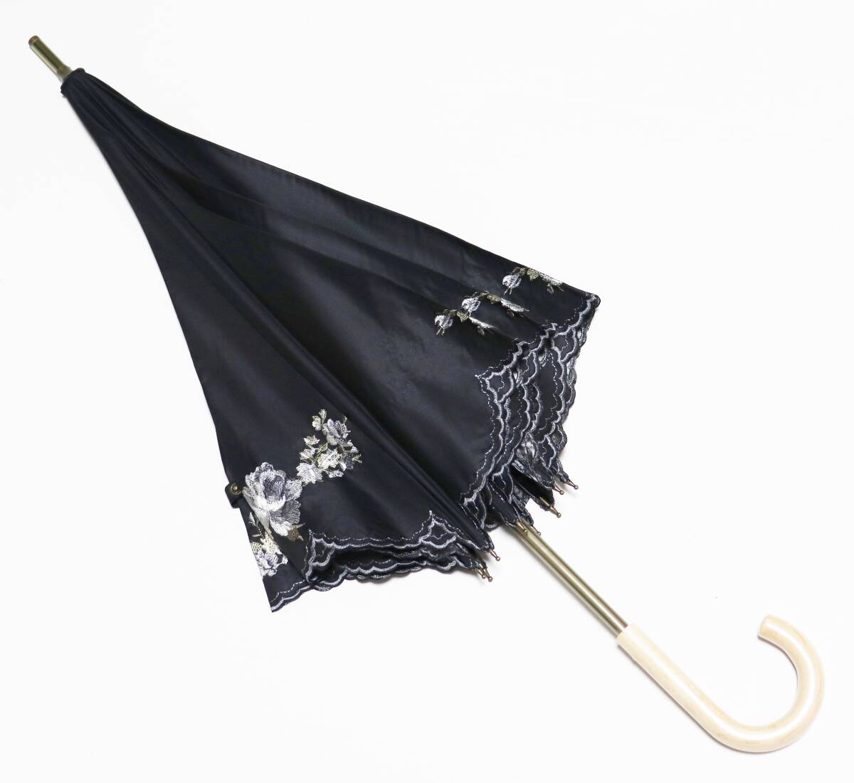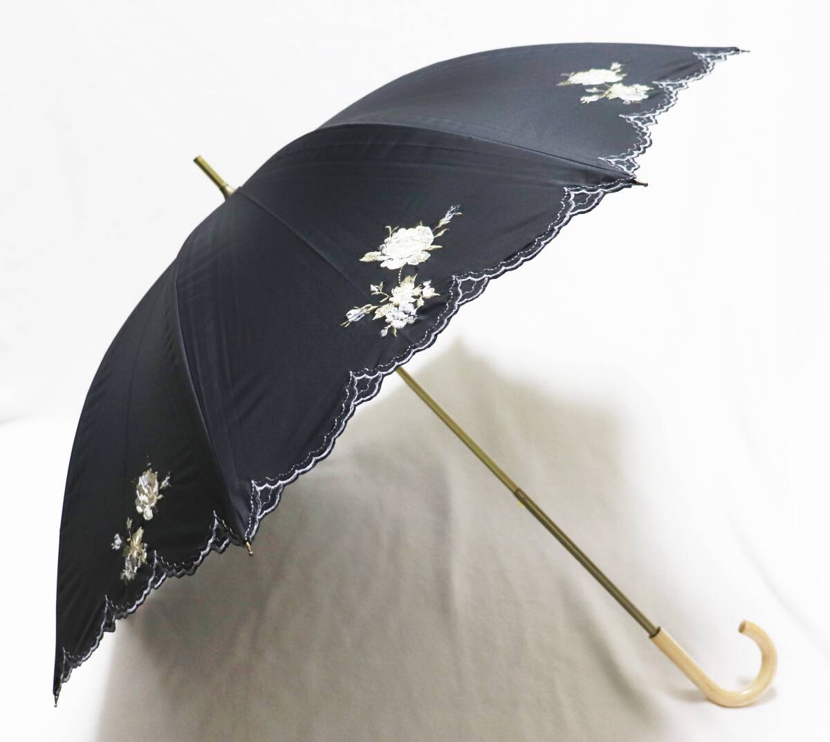 | 新品 上品 花柄豪華刺繍 晴雨兼用長傘 雨傘 日傘 手元が伸縮 木製ハンドル S2091 |