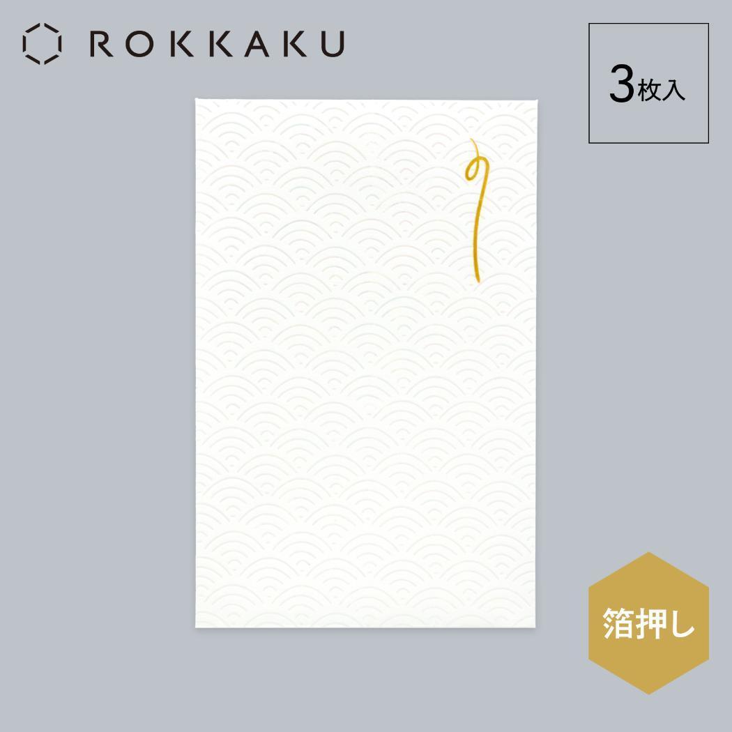 ROKKAKU ポチ袋 箔ぽち袋 メッセージカード付き 伝統柄 3セット入り なみ フタバ 和柄 箔押し お年玉 お盆玉 グッズ