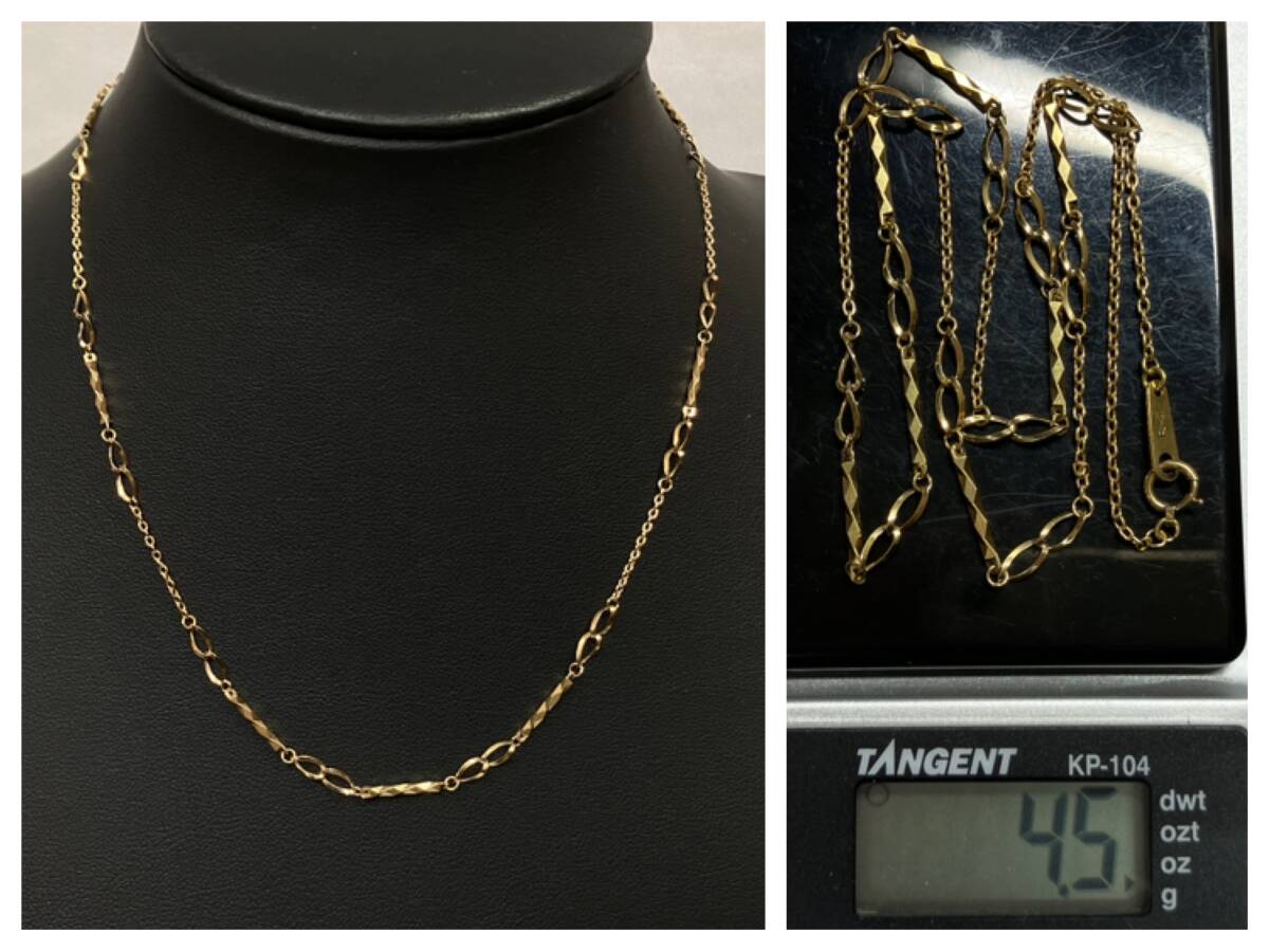 チェーン全長:約 44cm 総重量:約 4.5g サイズ表記(~cm位)は目安です。ブランドやデザインによって多少前後する場合がございます。予めご了承の上ご注文ください。 ![]() | ||||||