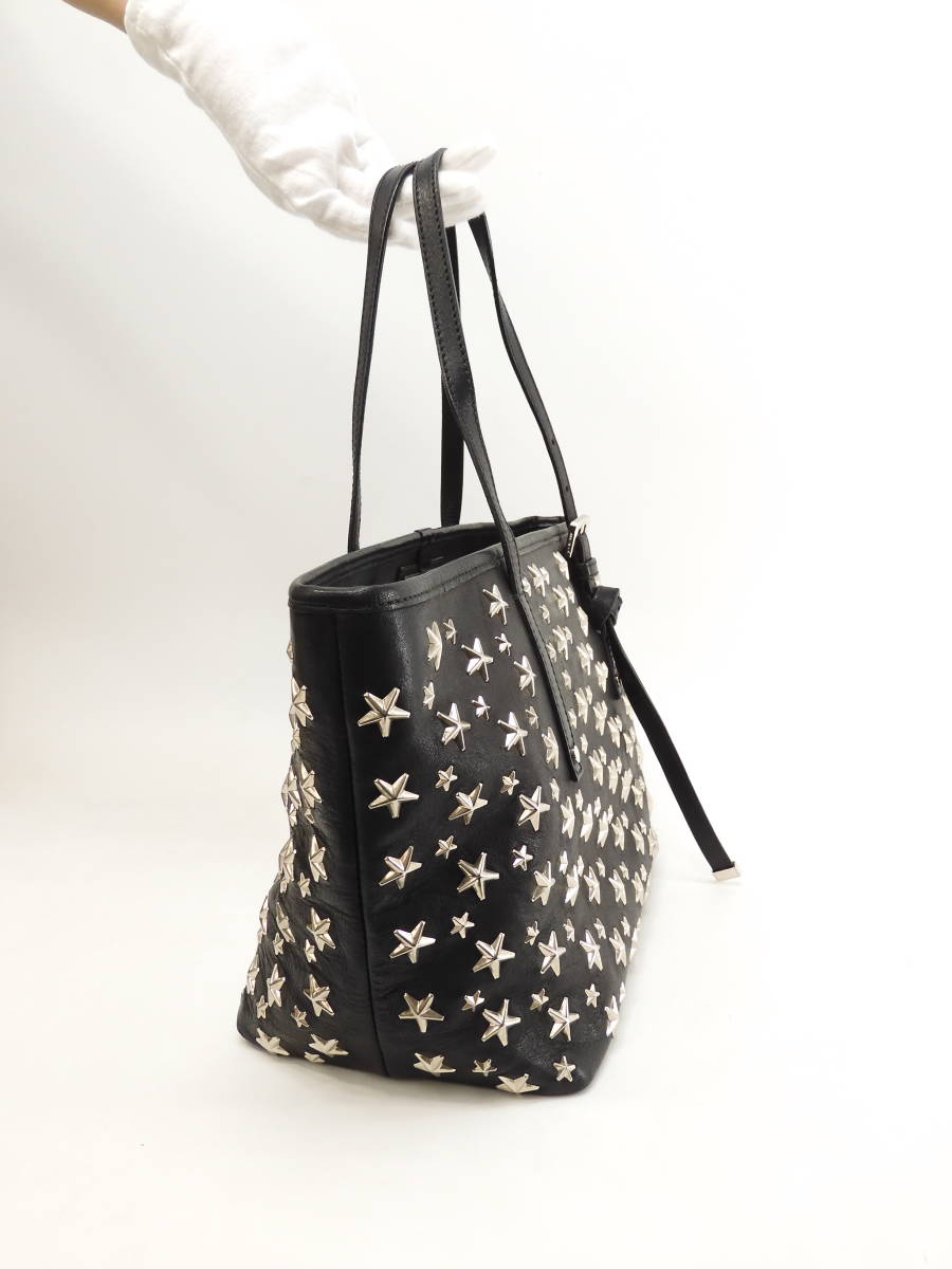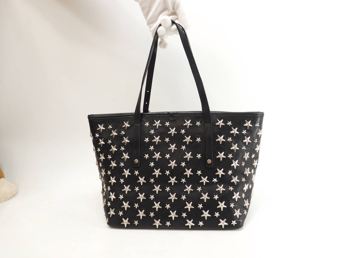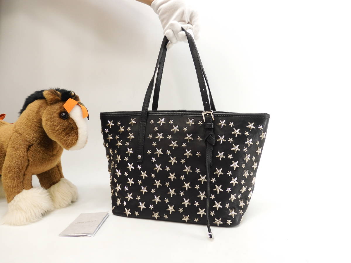 #JIMMYCHOO #Jimmy #Choo #Sasha #SashaS #Leather #BK #70%new #authentic #Star #Stads #HandBag #ToteBag #Silver #secondhand #wholeSale #haibanya #aisai-jp