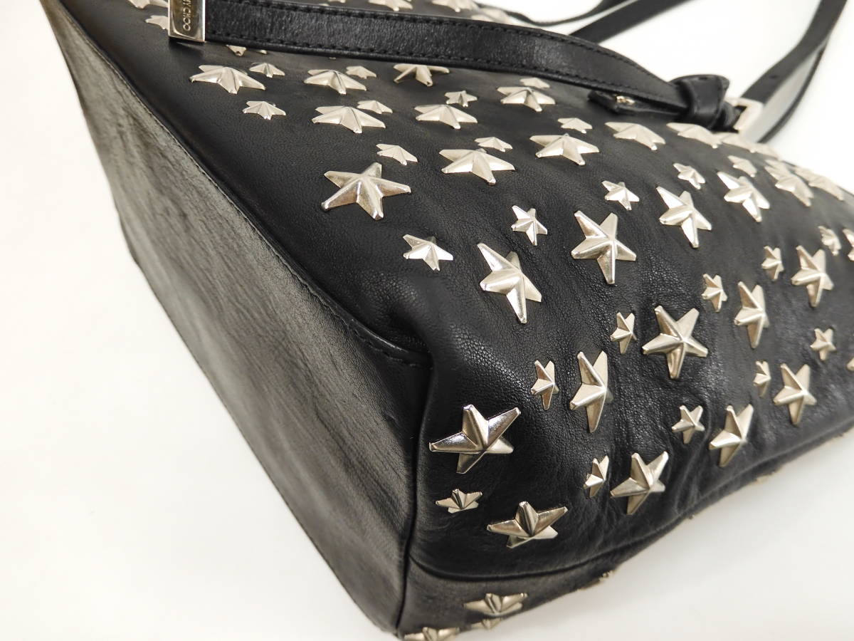 ジミーチュウ サシャS 星タッズ レザー黒 シルバー金具 ハンドバッグ@FJHP8F