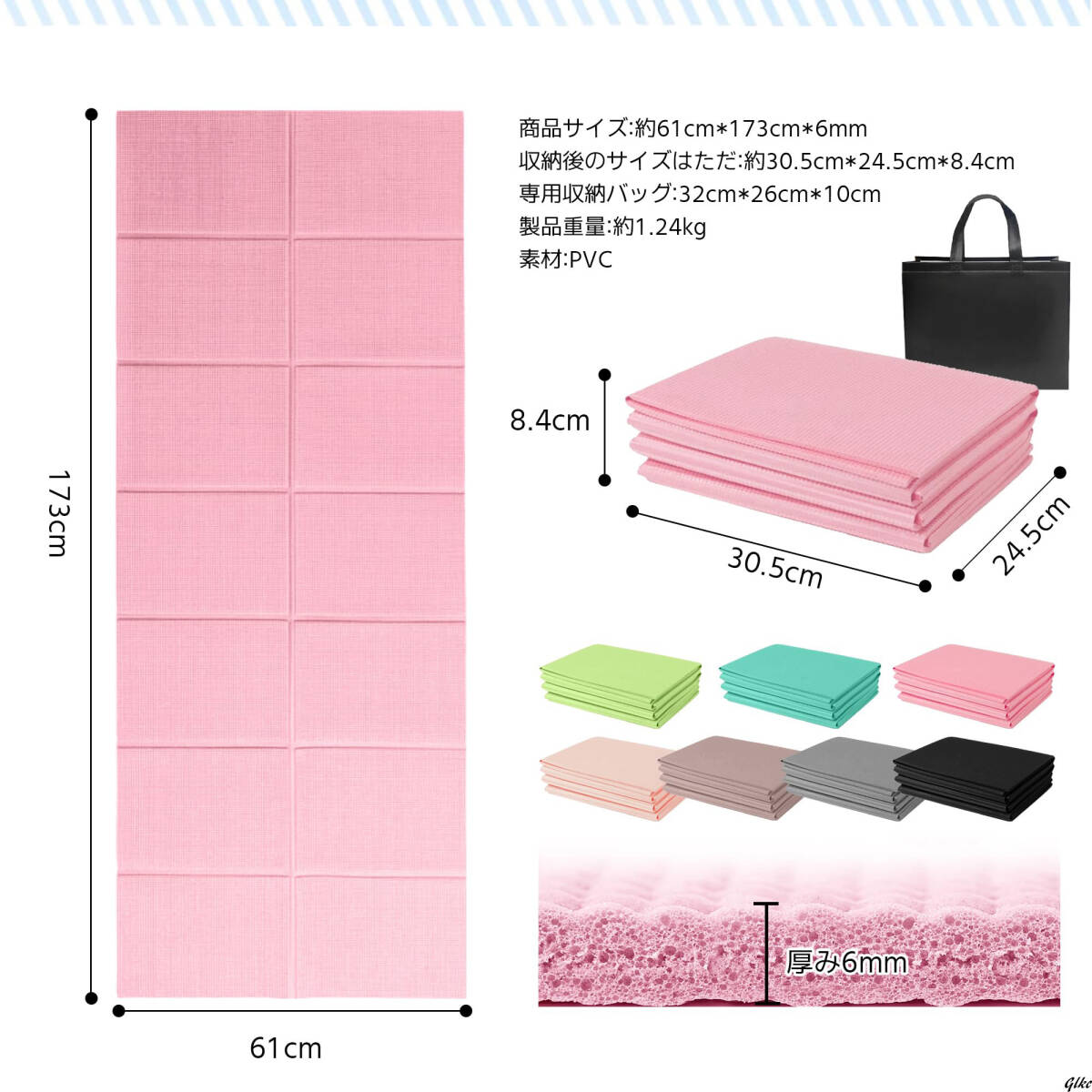 広々とした173×61cmのサイズで、6mmの厚みが膝や背中への負担をしっかり軽減。