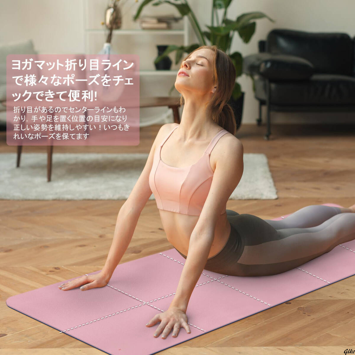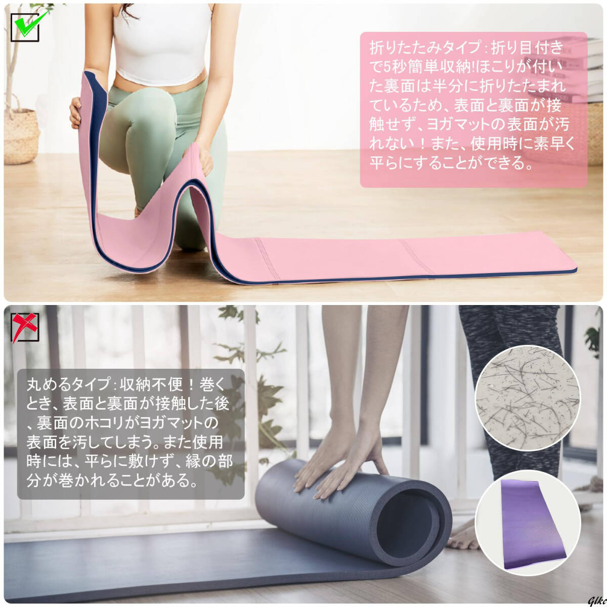 折りたたみ式で収納も簡単、折り目がポーズの位置確認や正しい姿勢をサポートします。