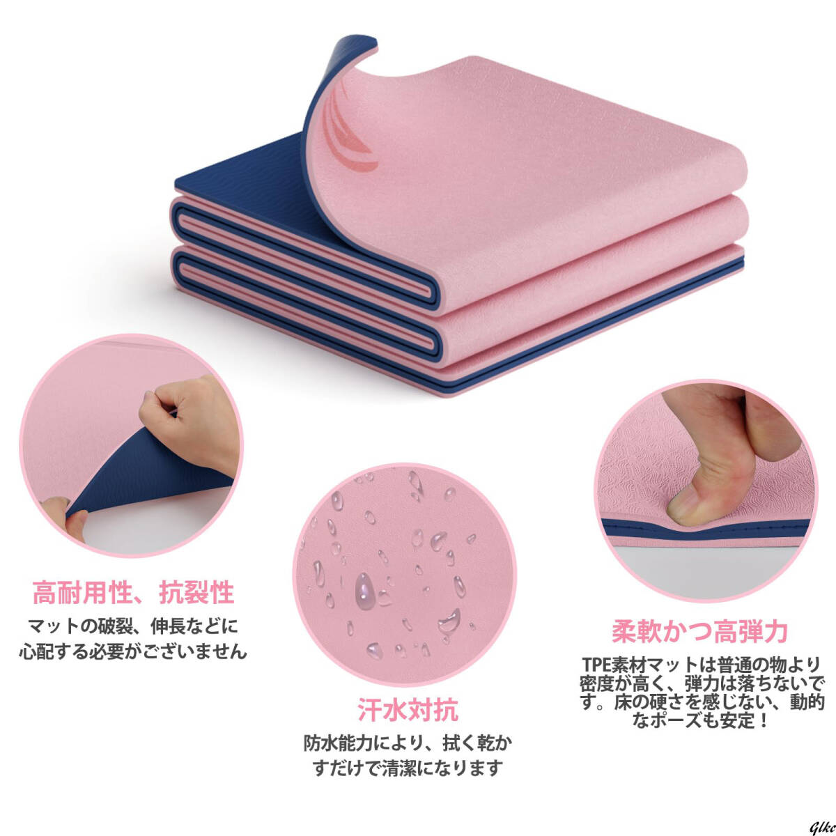 【滑り止め効果が高く、汗をかいても滑りにくく安定した使用感】 ヨガマット 軽量 TPE ピラティス エクササイズ 筋トレ ピンクブルー
