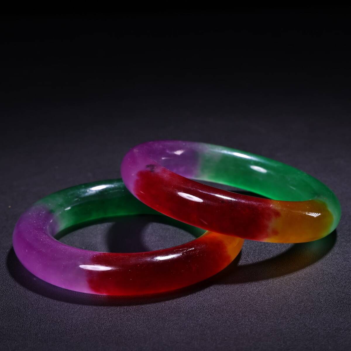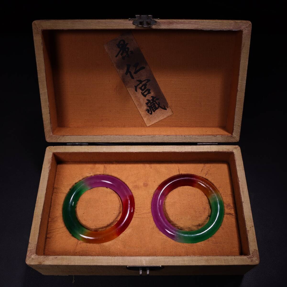 【超珍館蔵】翡翠製 細密彫 紫羅蘭 腕輪一對 漆器箱付 根付 裝身具 古賞物 古董品 古美術品 時代物 旧家蔵出 稀少珍蔵品