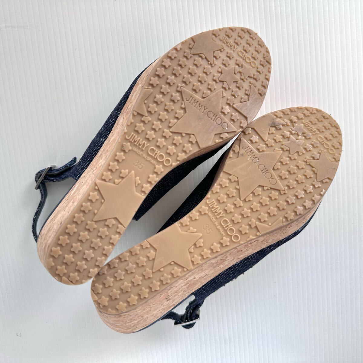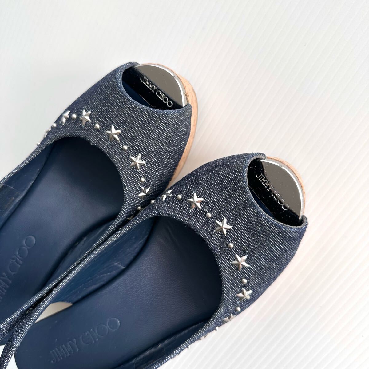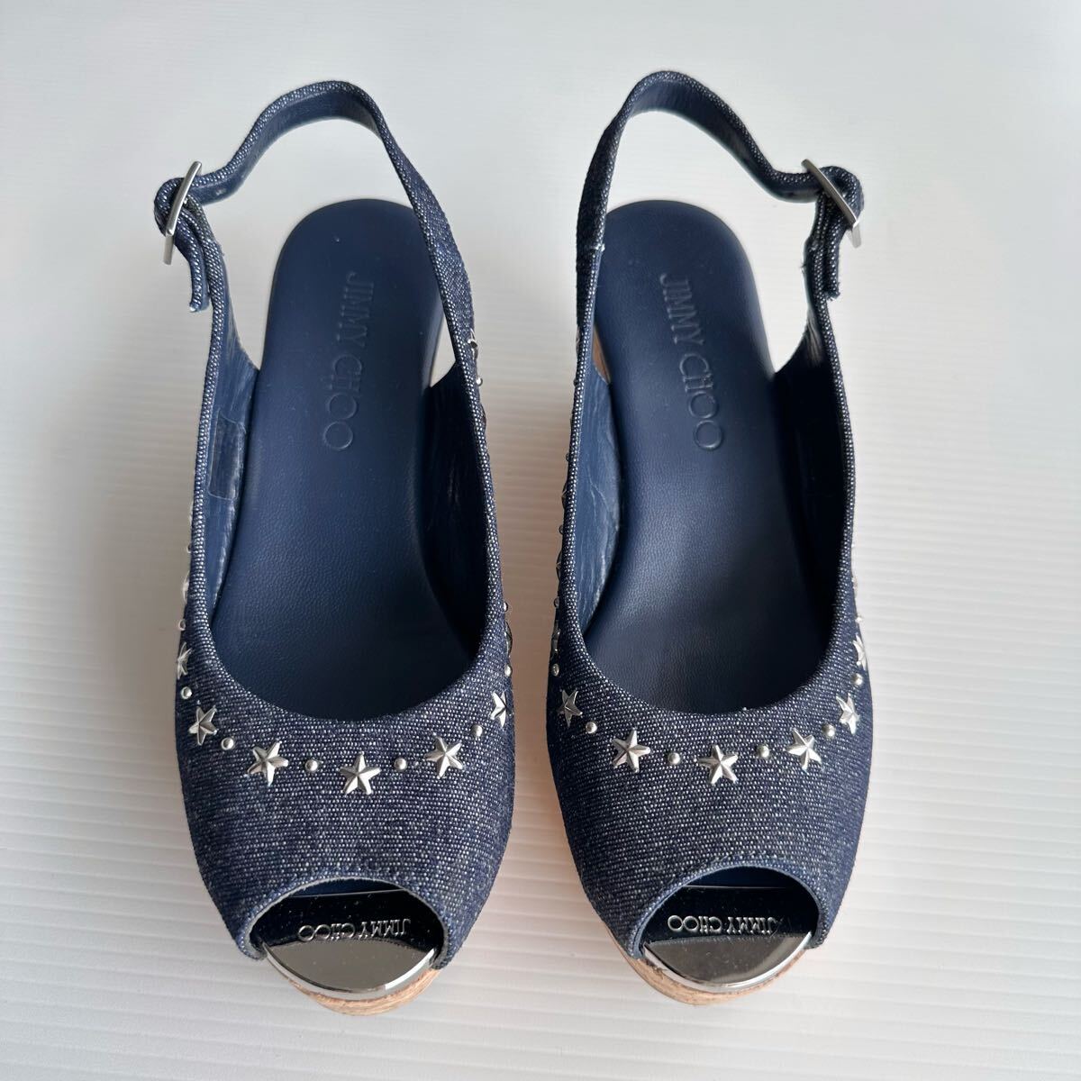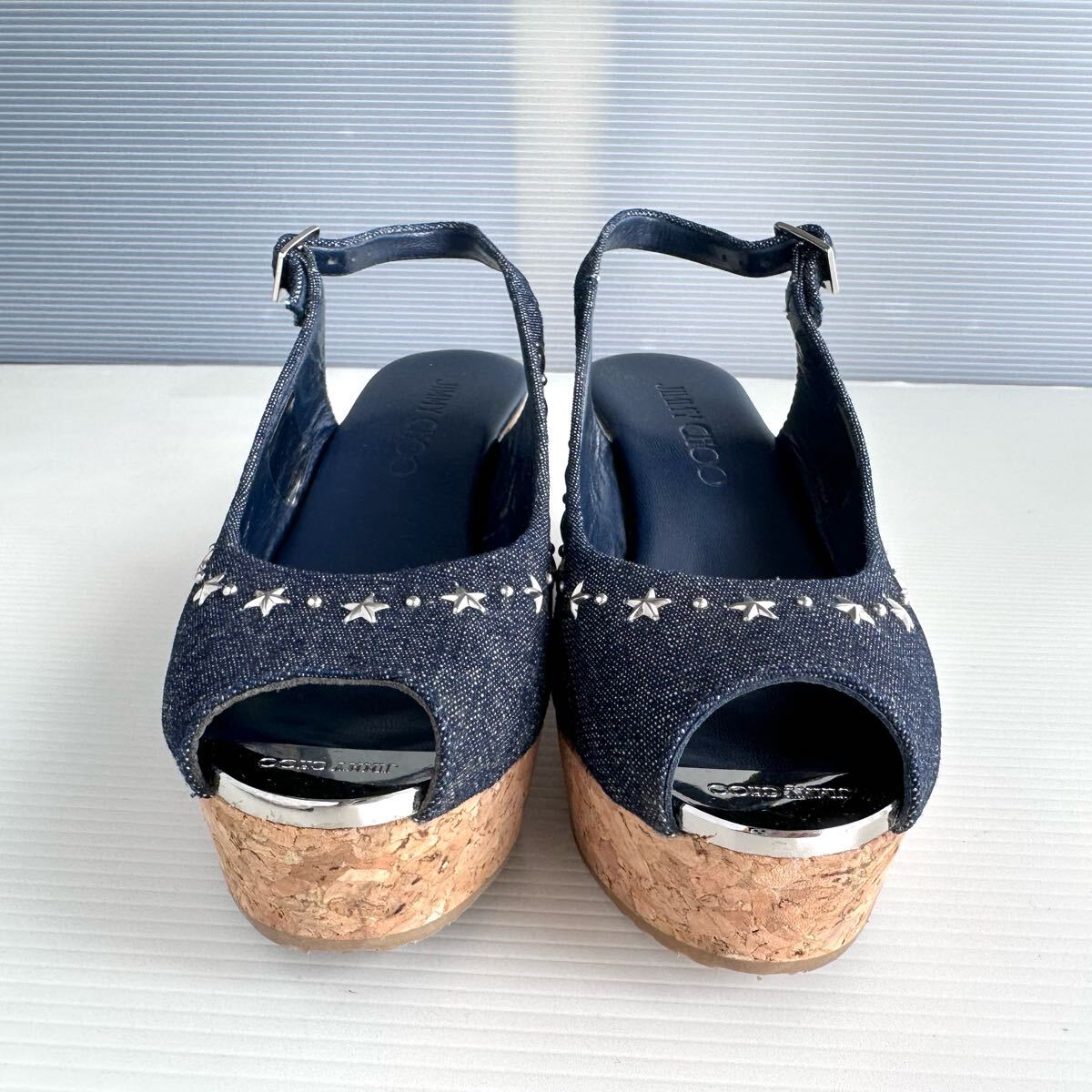 JIMMY CHOO PRAISE DENIM ジミーチュウ スタースタッズ オープントゥ ウェッジソール バックストラップ サンダル コルクソール ハイヒール パンプス 靴 レーディス 35 正規品 試着のみ