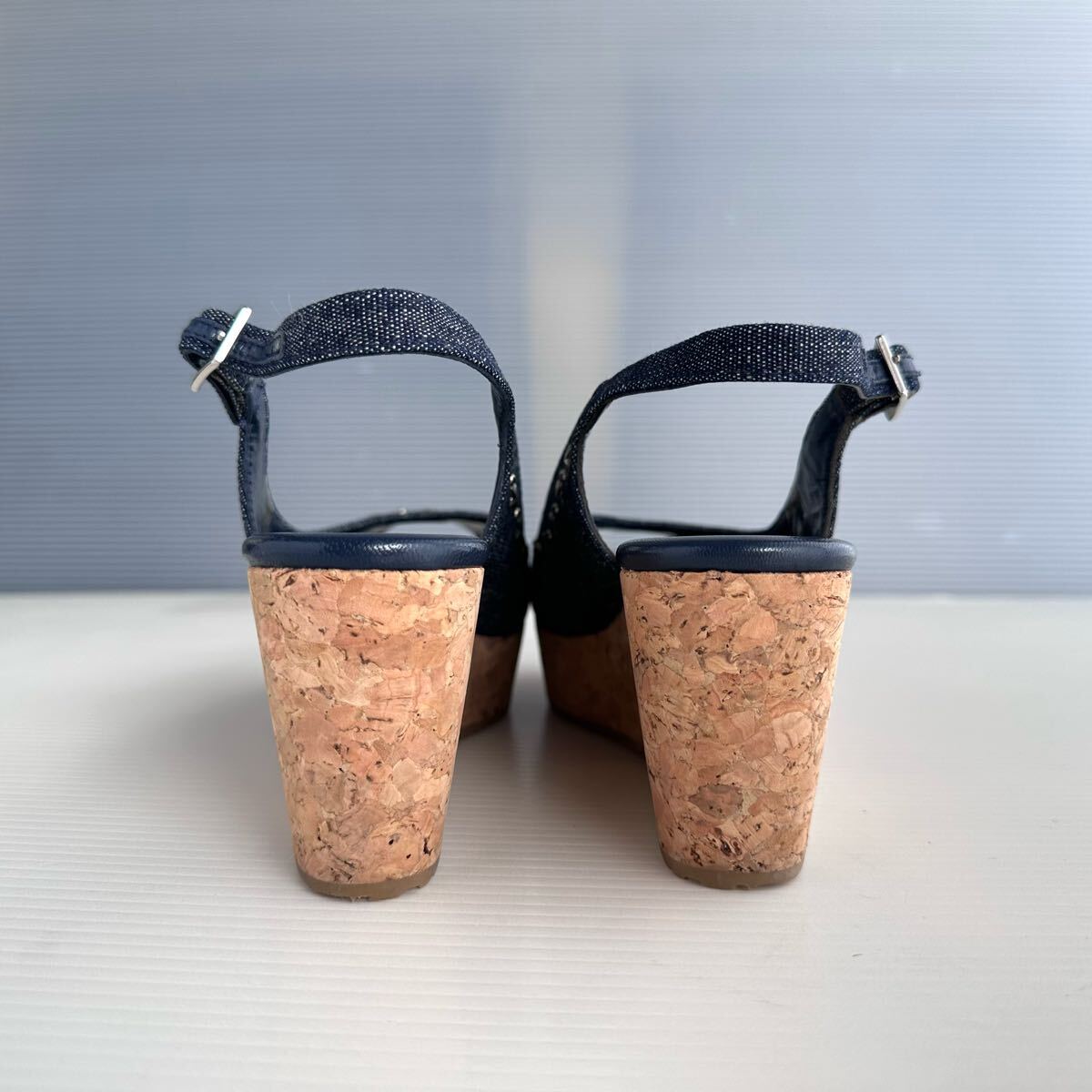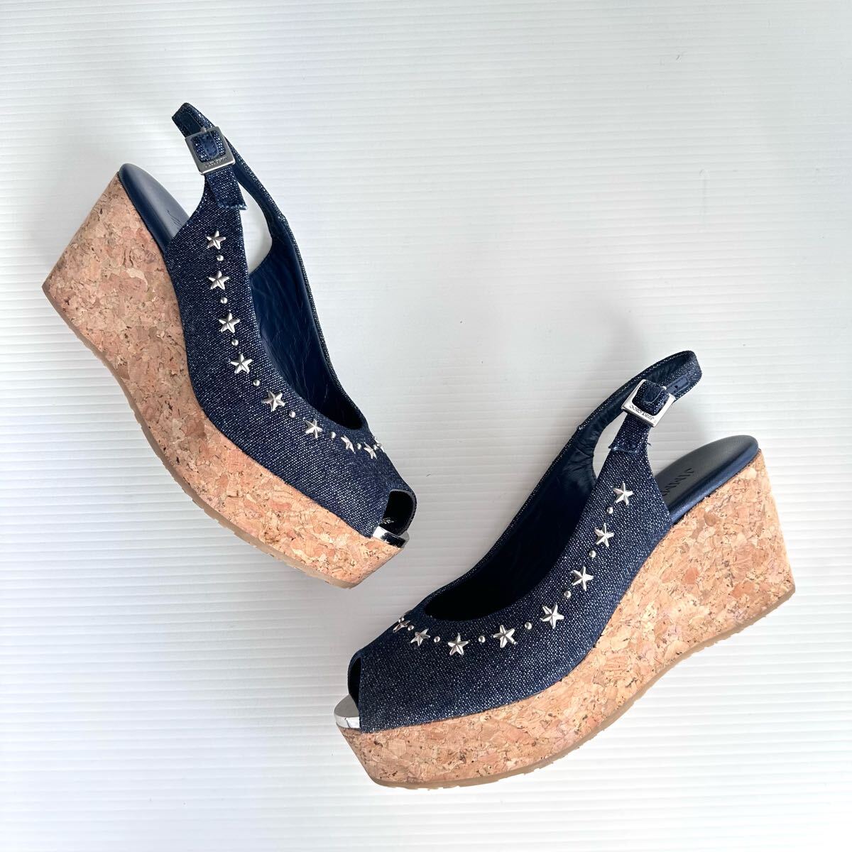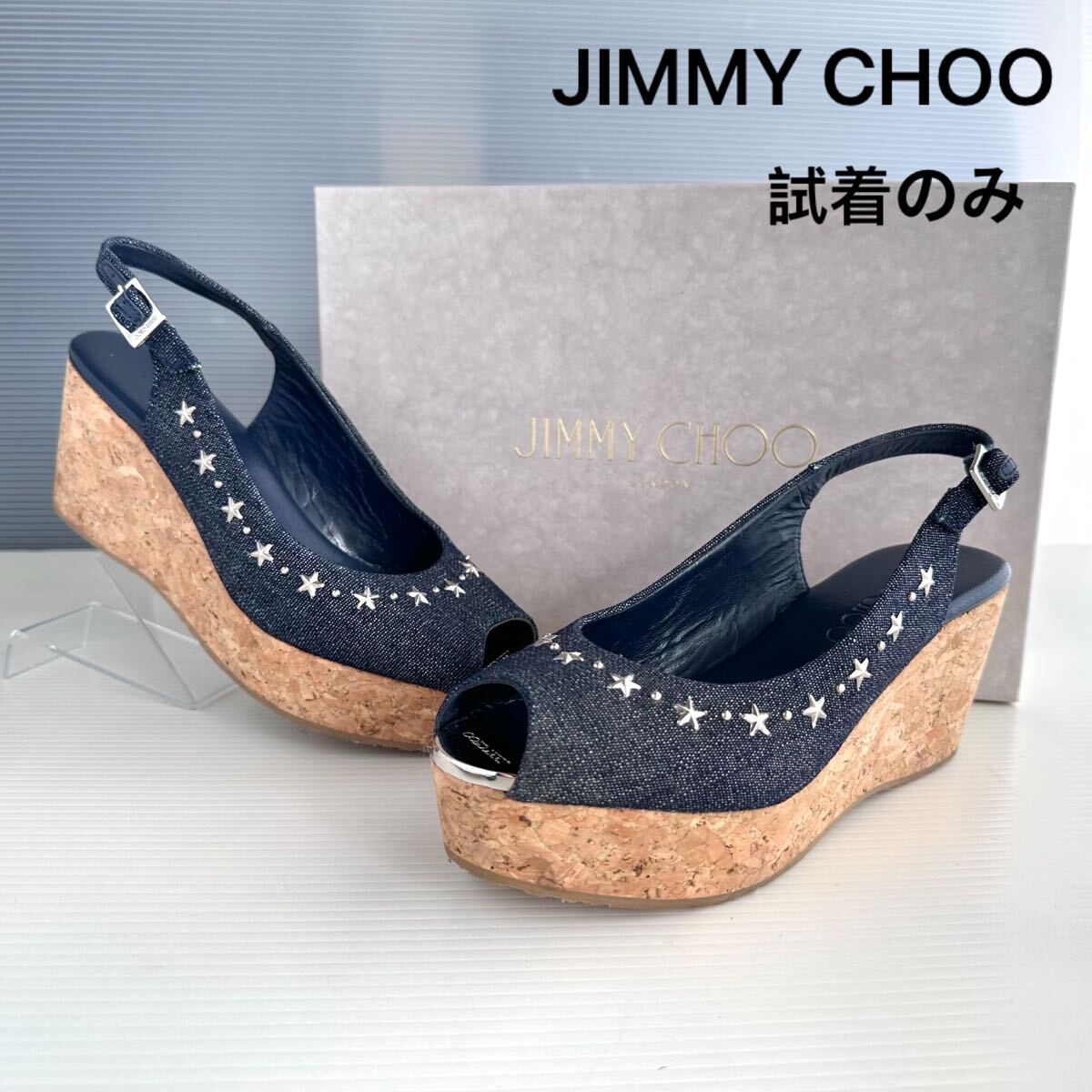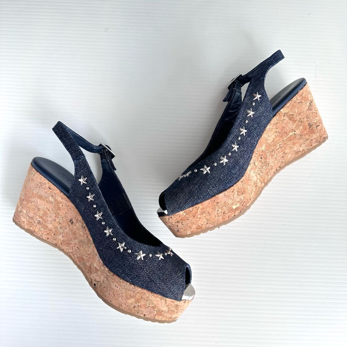 JIMMY CHOO PRAISE DENIM ジミーチュウ スタースタッズ オープントゥ ウェッジソール バックストラップ サンダル コルクソール ハイヒール パンプス 靴 レーディス 35 正規品 試着のみ