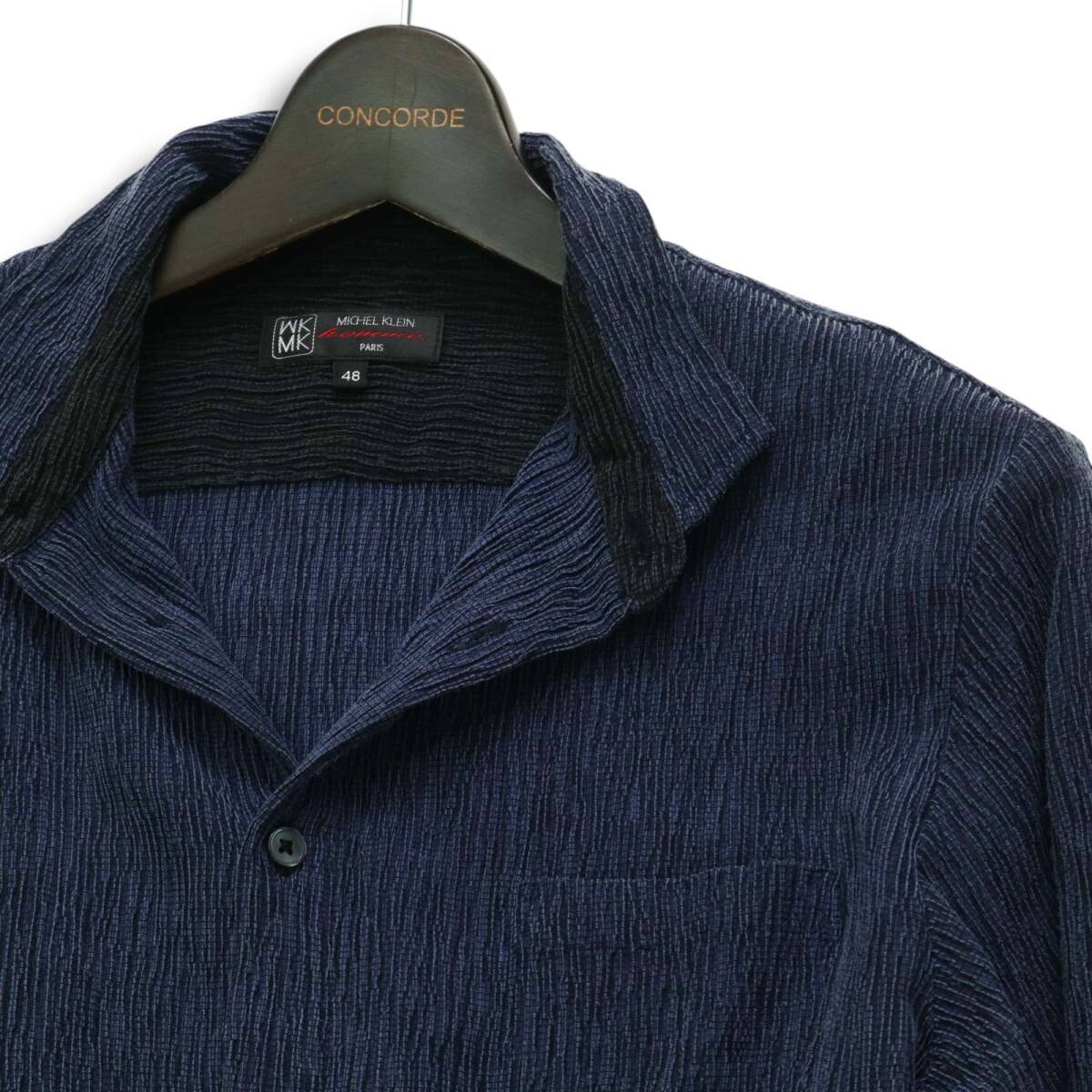 MK HOMME ミッシェルクラン オム 春夏★ 7分袖 ドライ 楊柳 スリム シャツ Sz.48 メンズ 紺 ネイビー