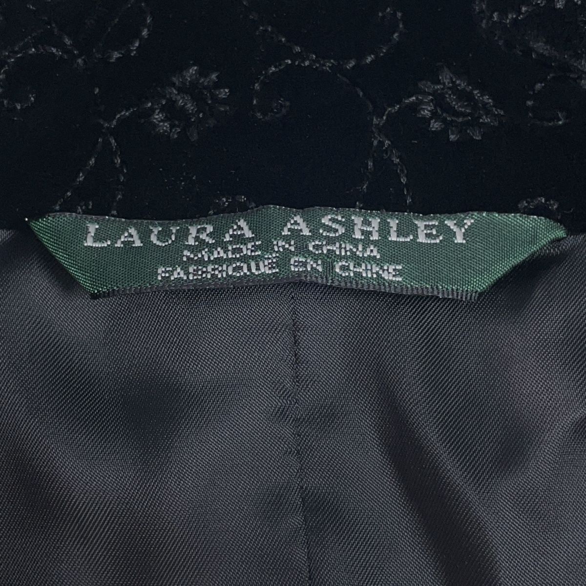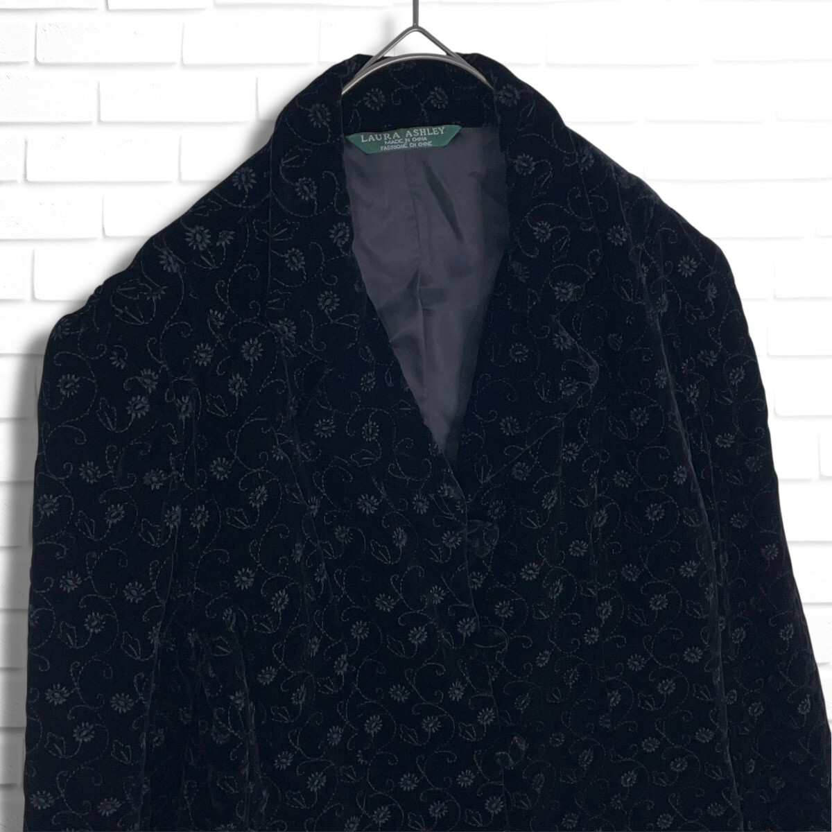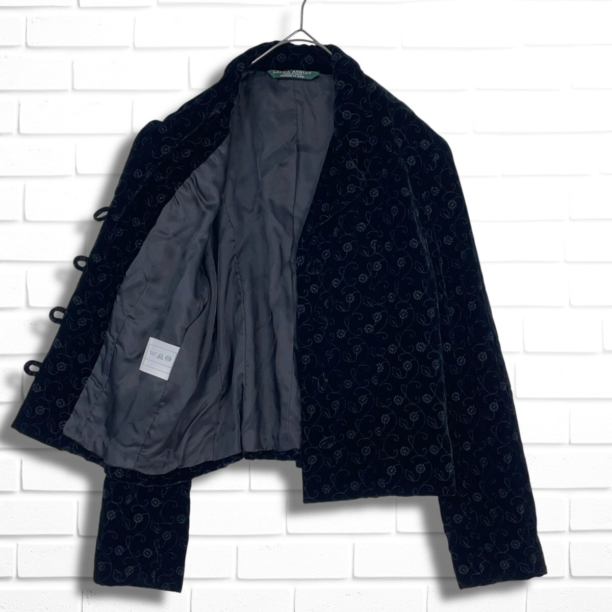 美品 LAURA ASHLEY ローラアシュレイ 花柄 フラワー 刺繍 総柄 シルク 絹 ブレンド ベロア ジャケット 黒 ブラック レディース 9 3655F◇