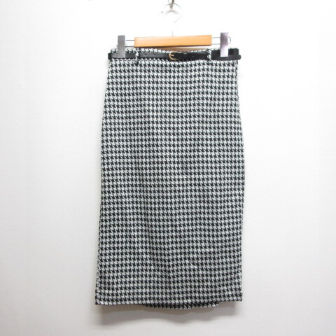 アズノウアズ as know as plus 千鳥格子柄 ストレッチ タイト スカート ベルト付き F 黒 ブラック ウエストゴム レディース