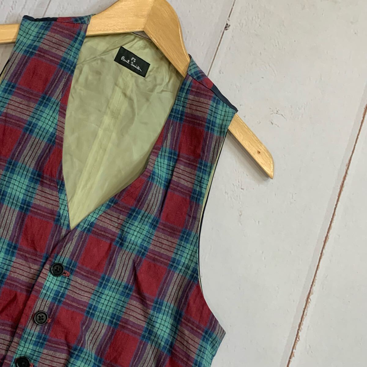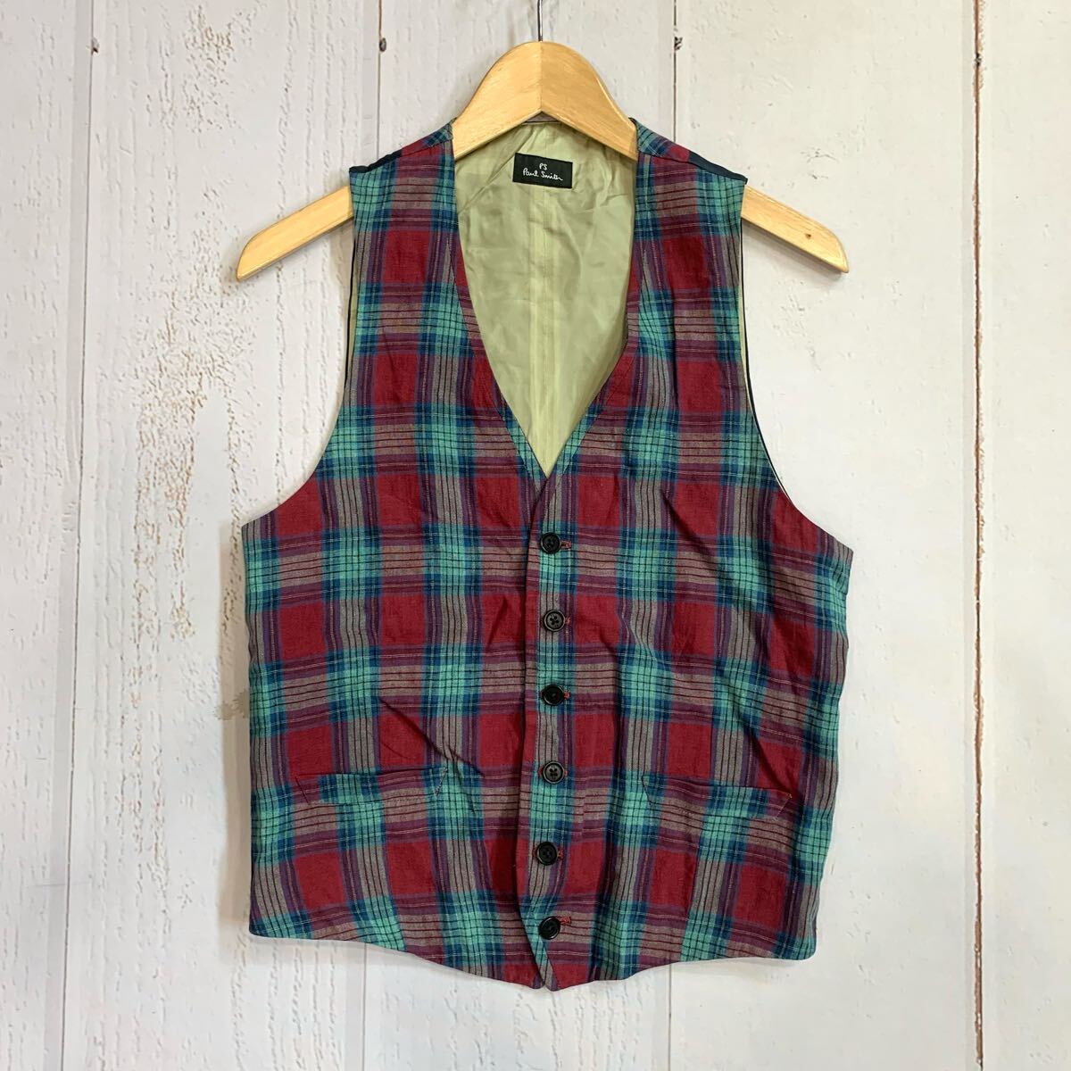 Z ▼ 洗練されたデザイン!! 'チェック柄' Paul Smith ポールスミス リネン100% ベスト size:M メンズ 紳士服 トップス